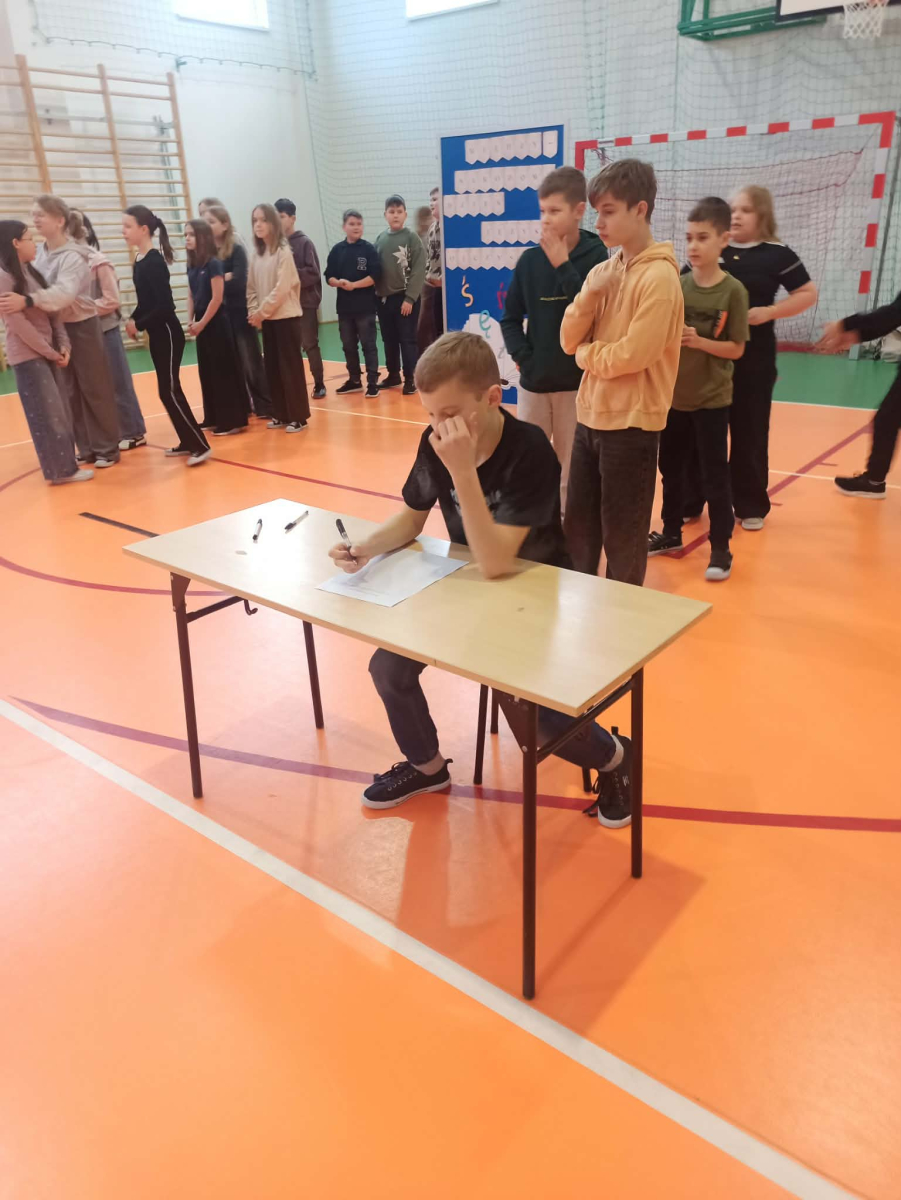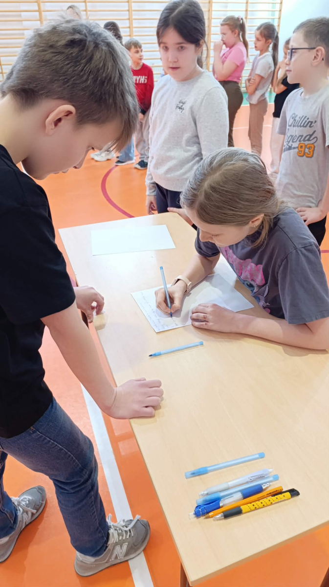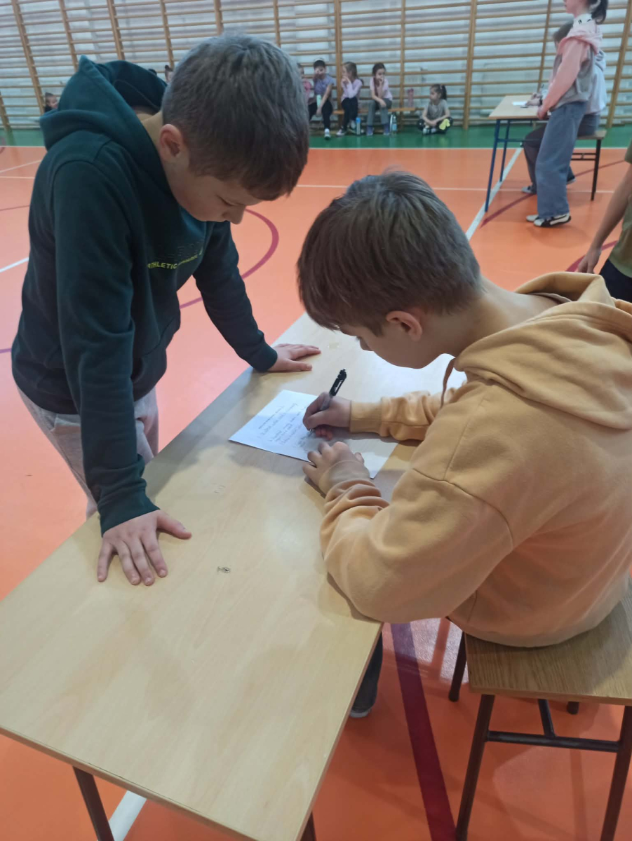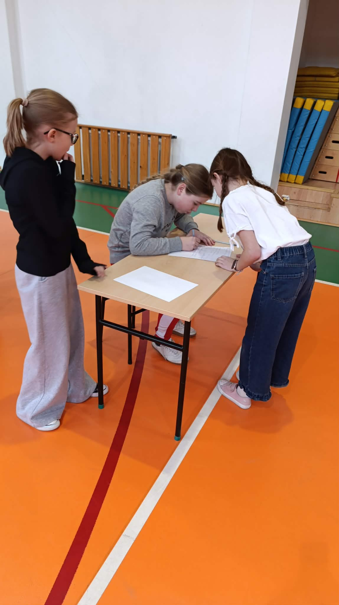 gr. II: kl. V-VI, gr. III: kl. VII – VIII, kolejno podbiegali do kartki