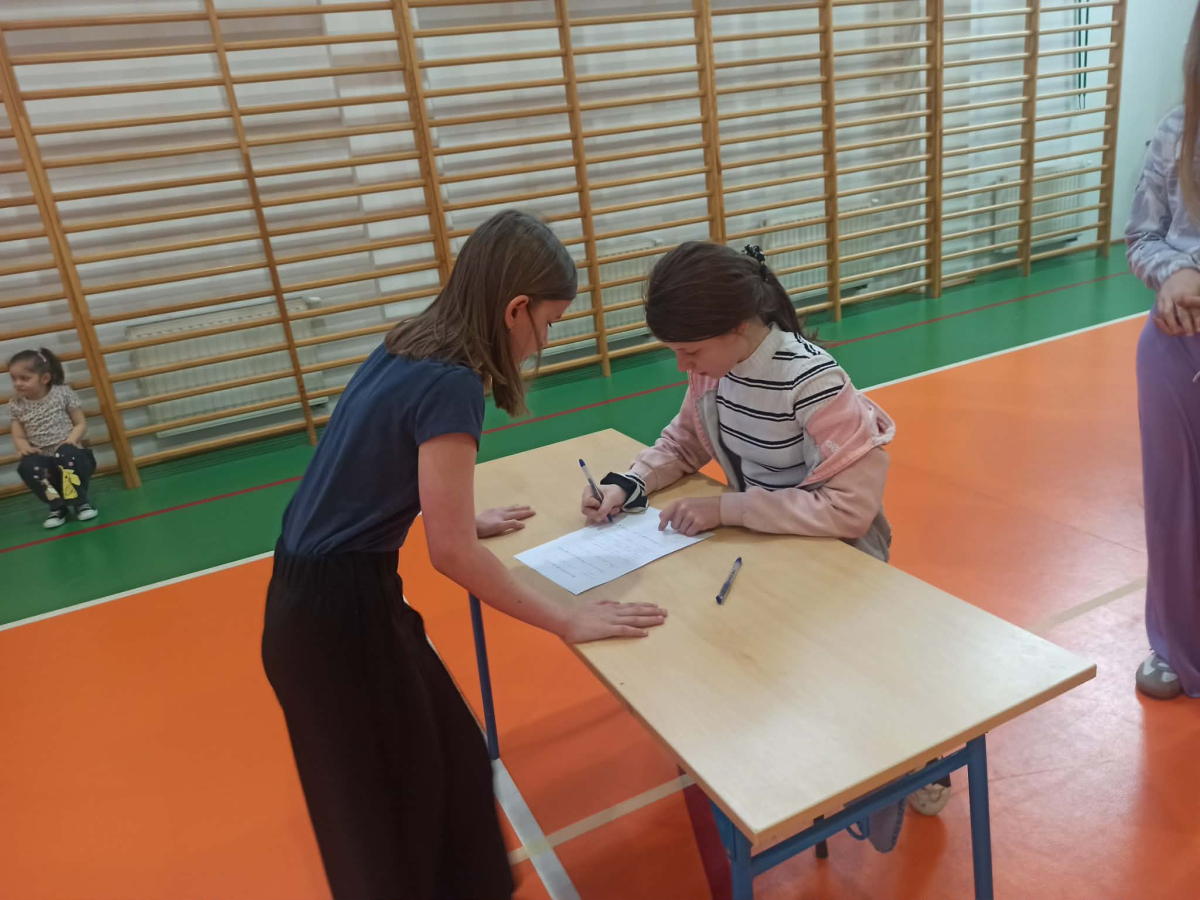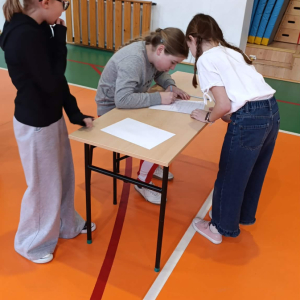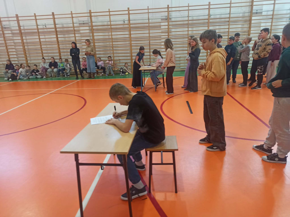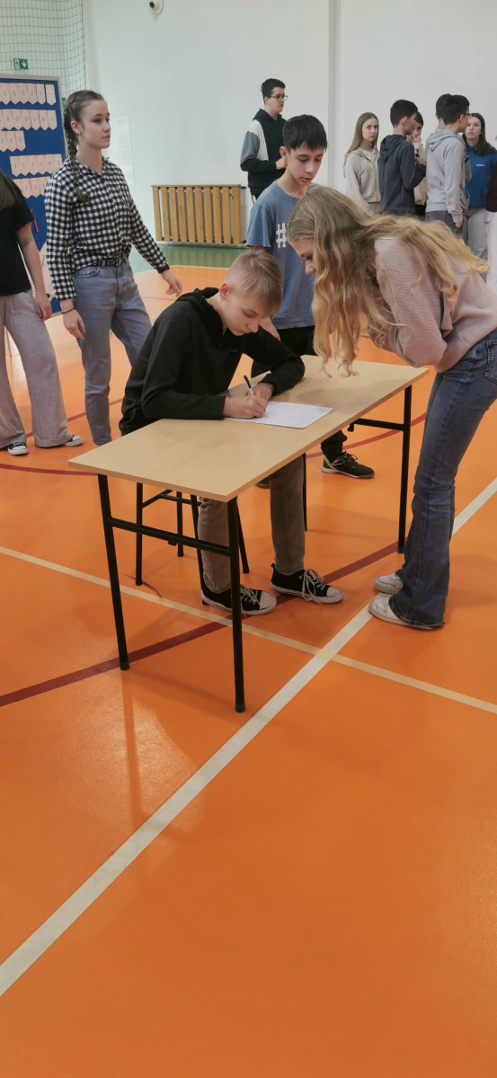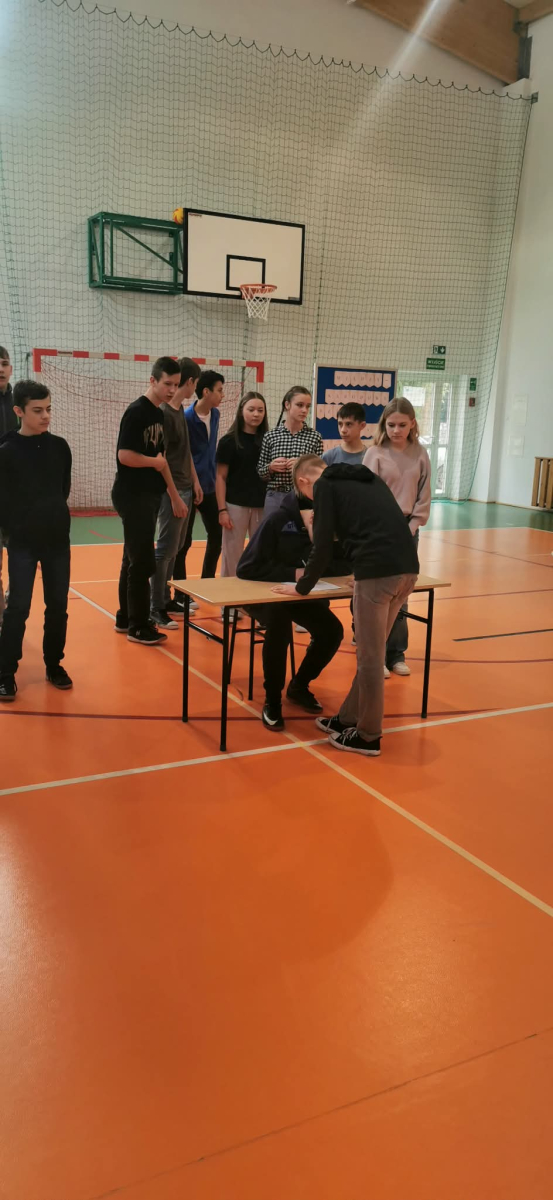 gr. II: kl. V-VI, gr. III: kl. VII – VIII, kolejno podbiegali do kartki
