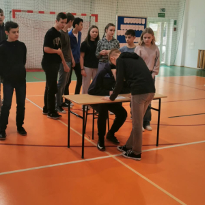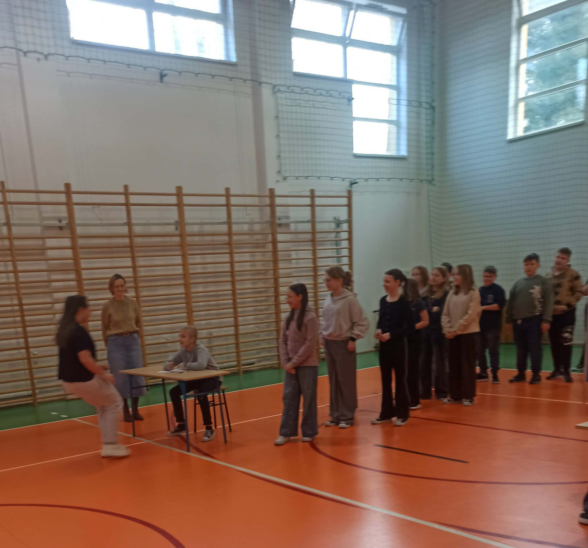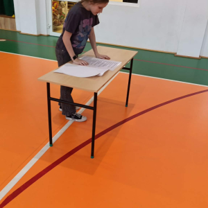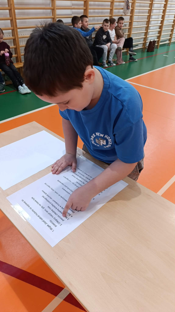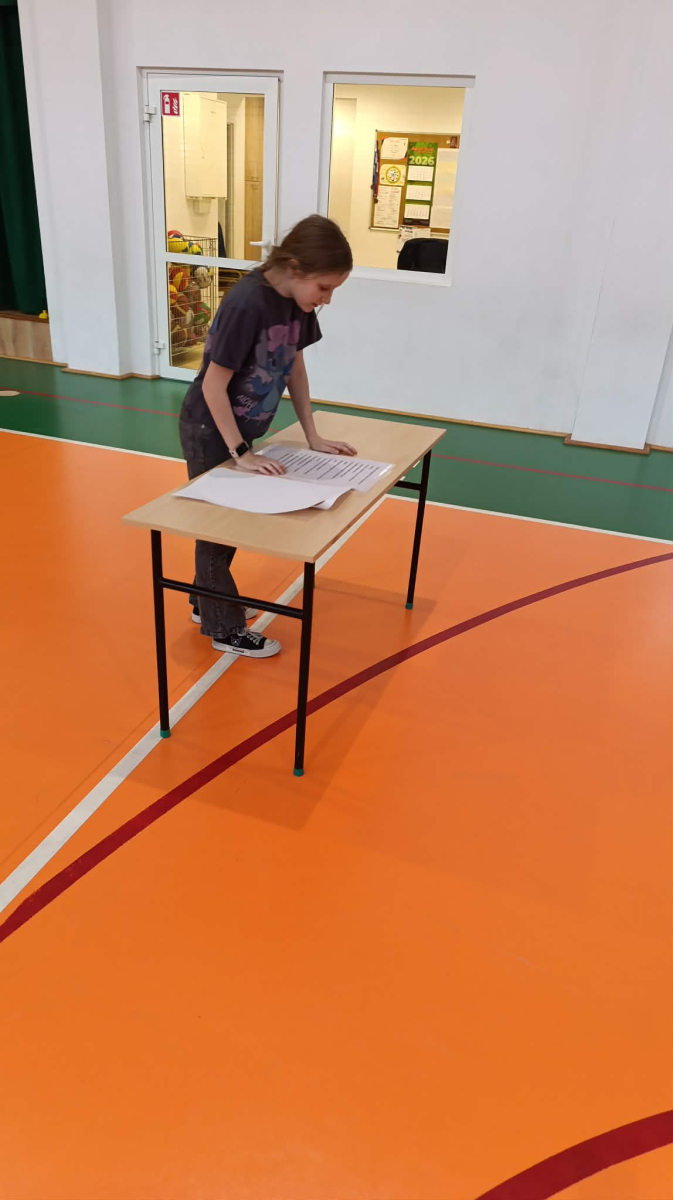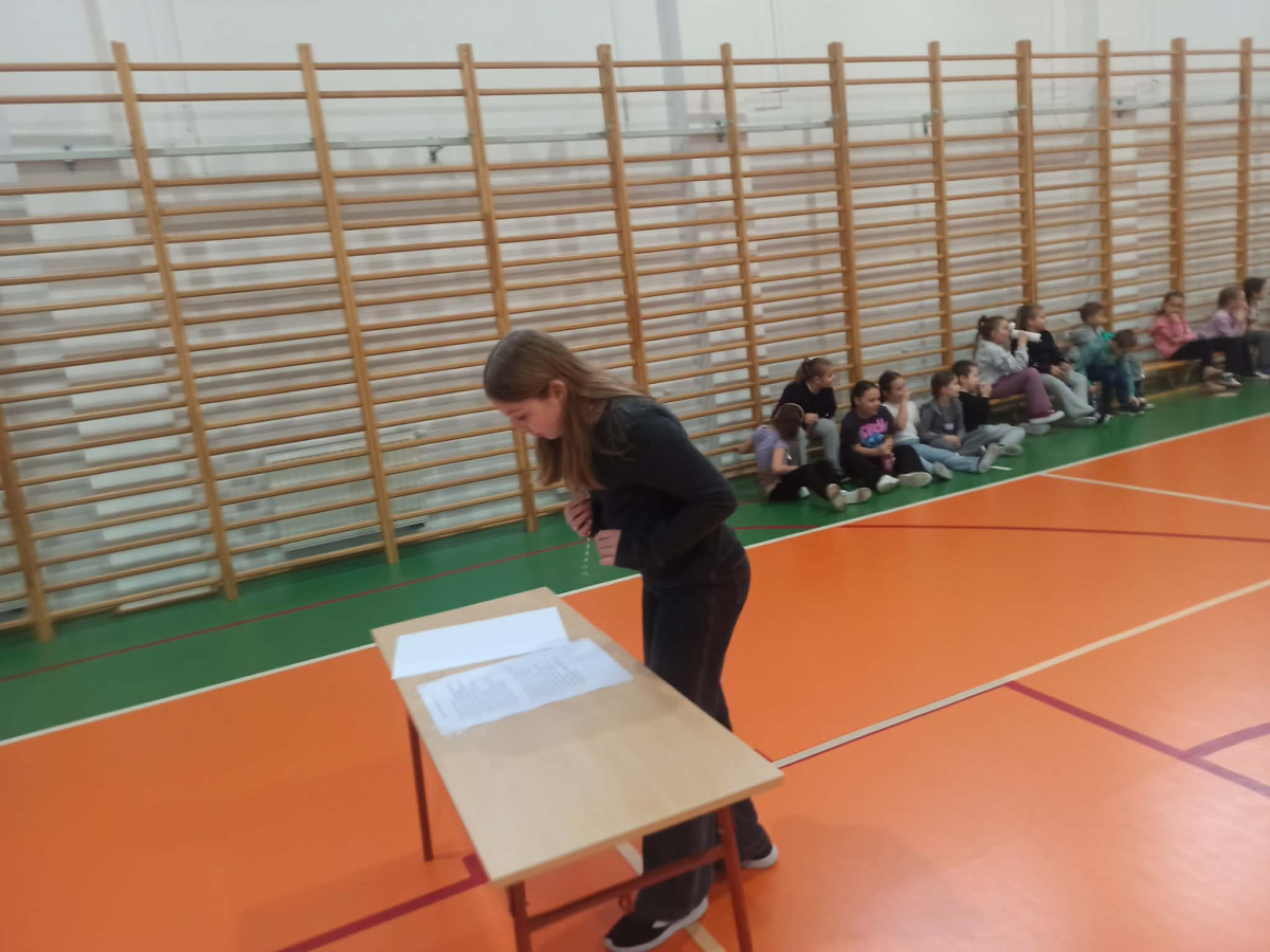 Zadanie uczniów polegało na tym, że na sali gimnastycznej