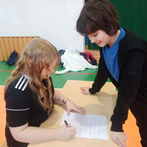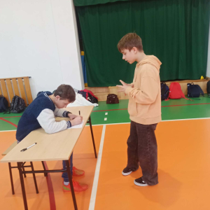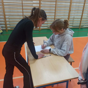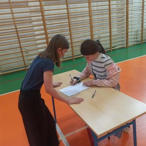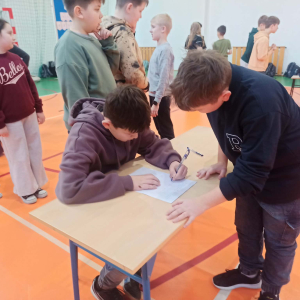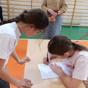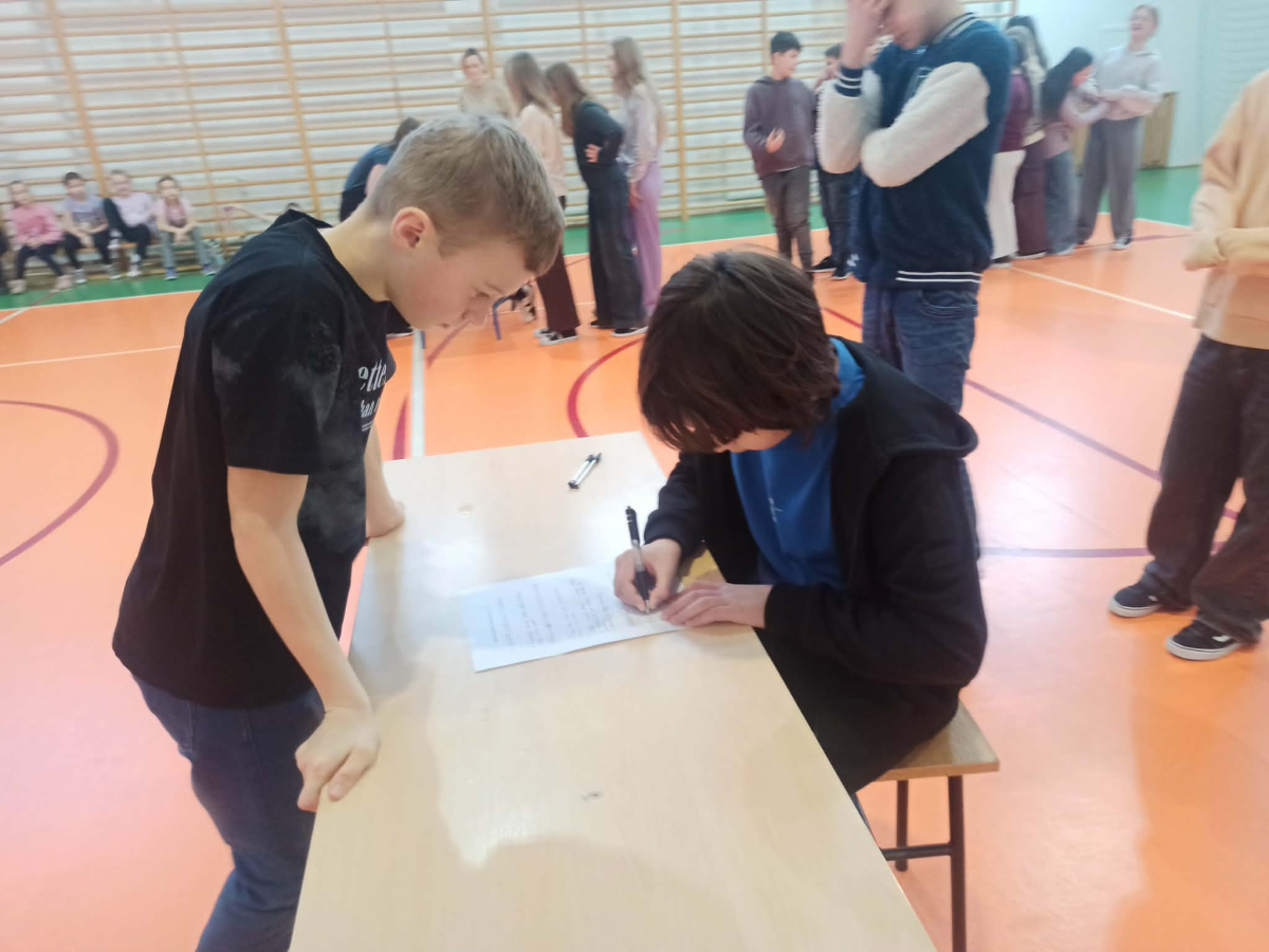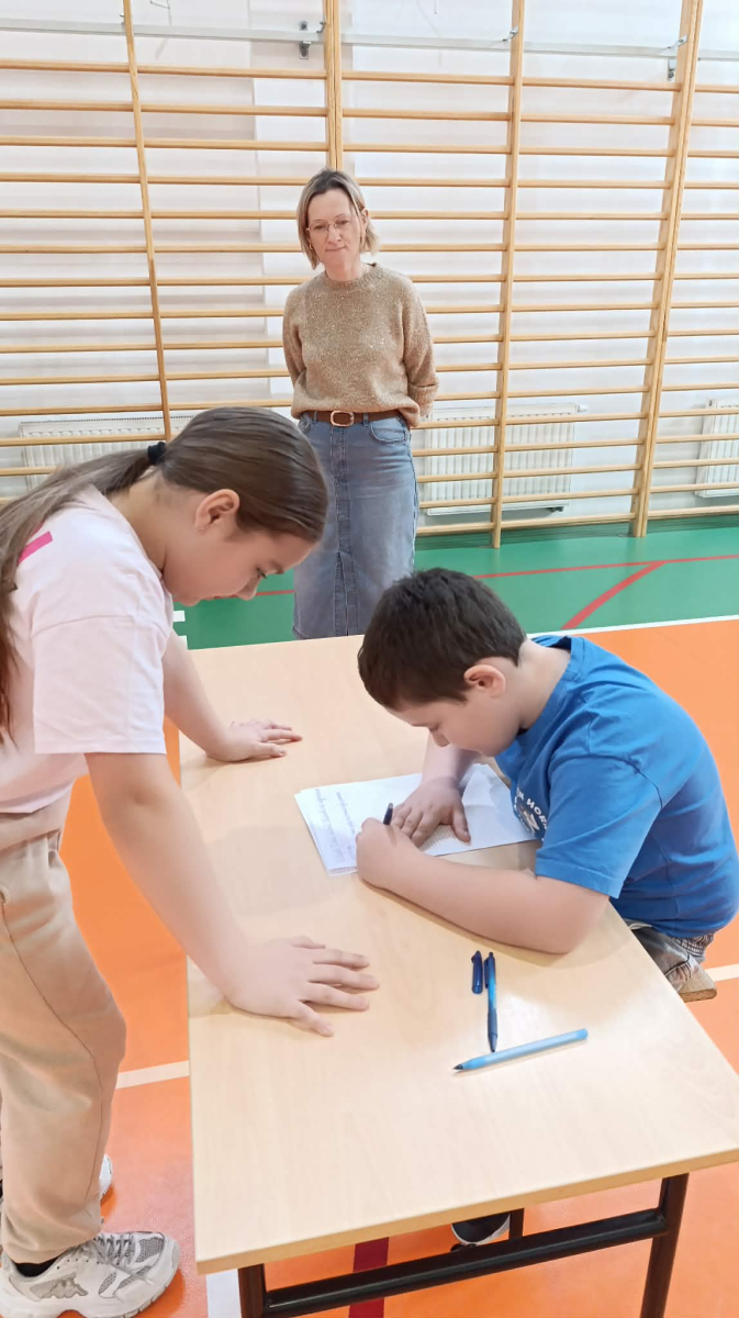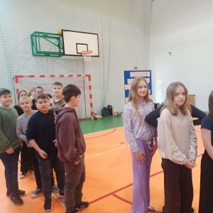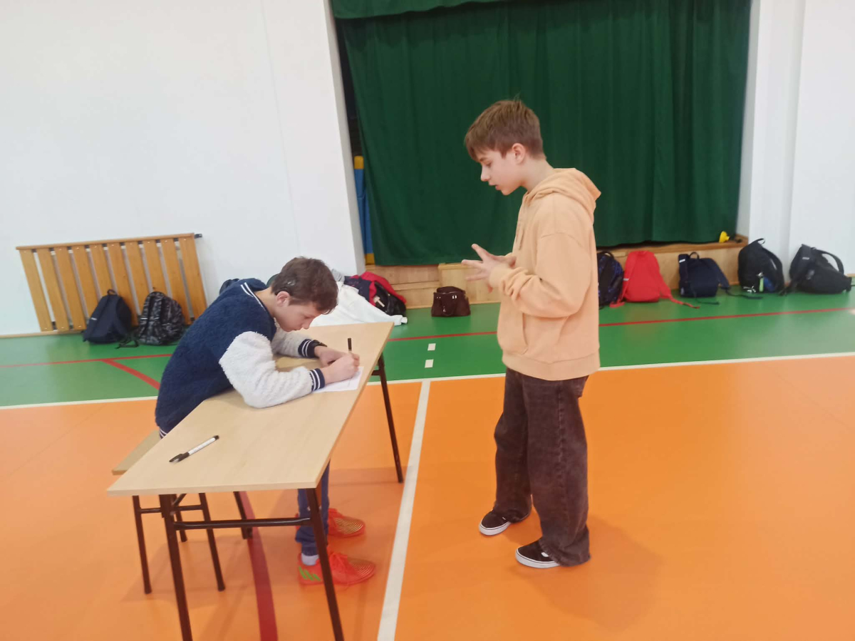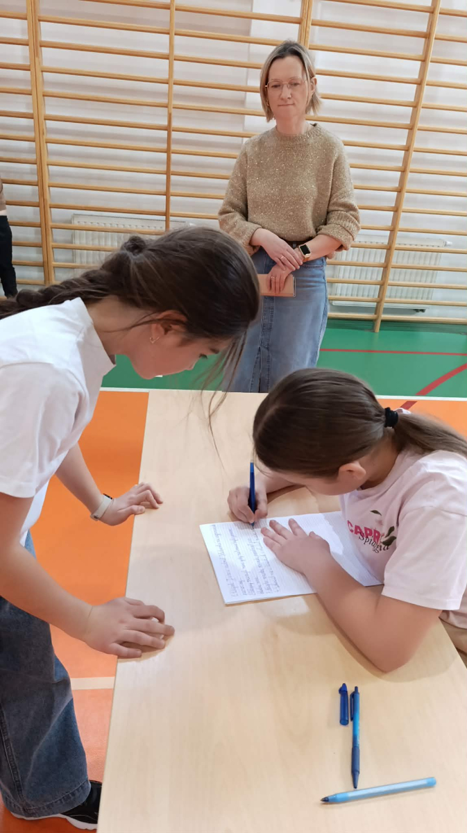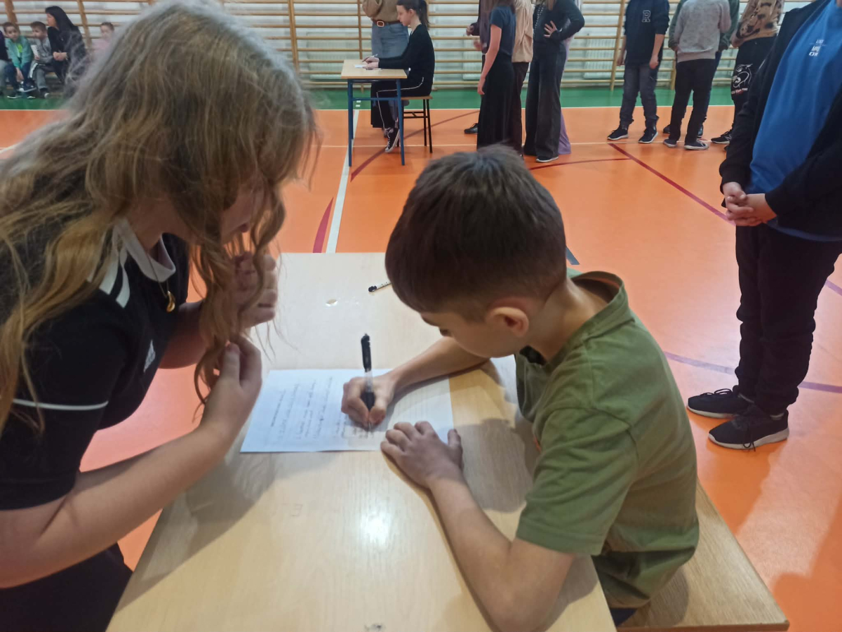 Z okazji przypadającego na czas ferii Międzynarodowego Dnia Języka Ojczystego Panie: Ewelina Mucha, Lucyna Woźny, Anna Kwiatek zorganizowały akcję pt. „Biegane dyktando”, skierowaną do uczniów klas III–VIII. Celem wydarzenia było promowanie poprawnej polszczyzny, rozwijanie umiejętności ortograficznych oraz połączenie nauki z aktywnością ruchową i dobrą zabawą.