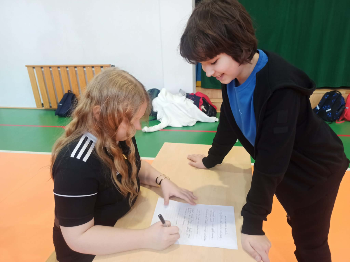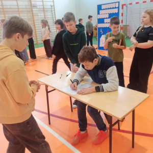 Wspólna rywalizacja, element ruchu oraz możliwość sprawdzenia swoich umiejętności w nietypowej formie sprawiły, że nauka ortografii stała się atrakcyjna i angażująca dla uczniów naszej szkoły.