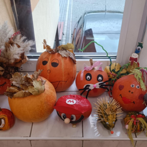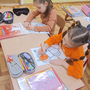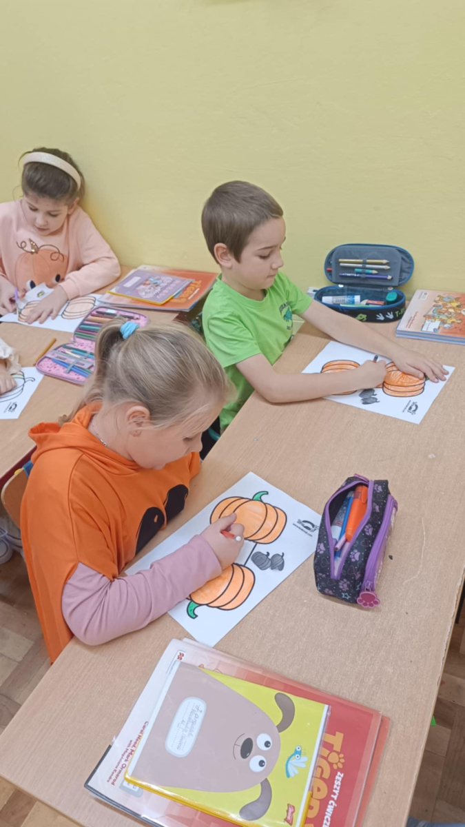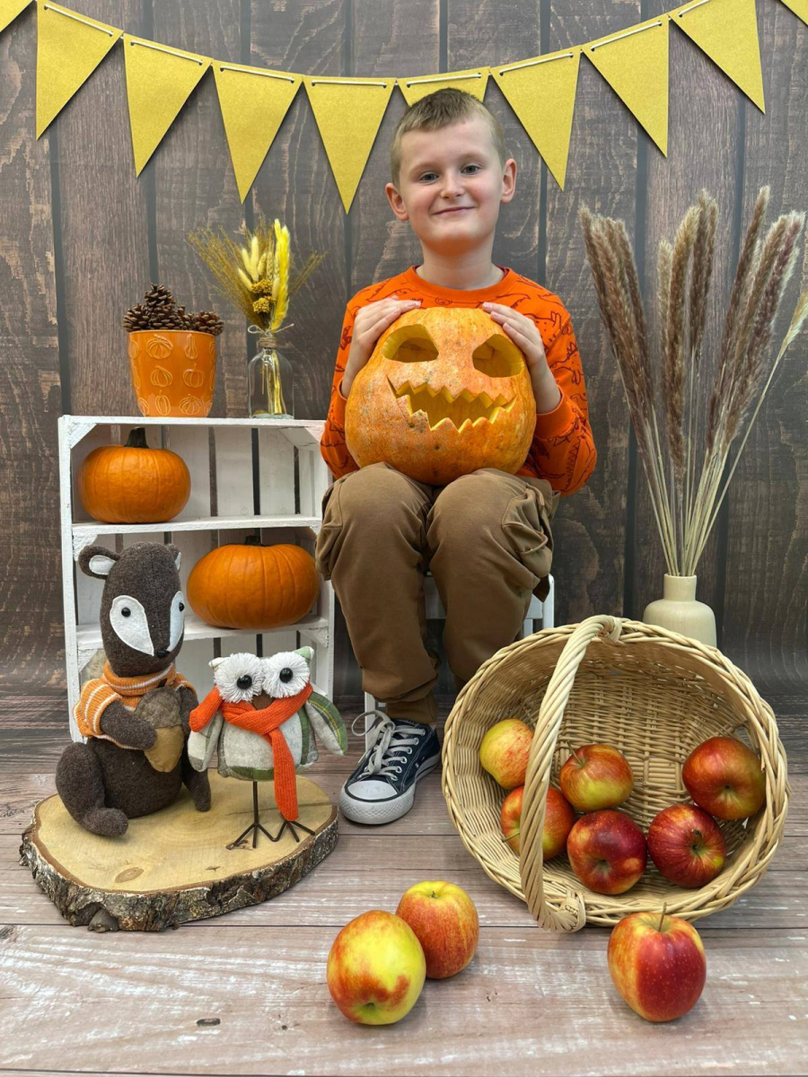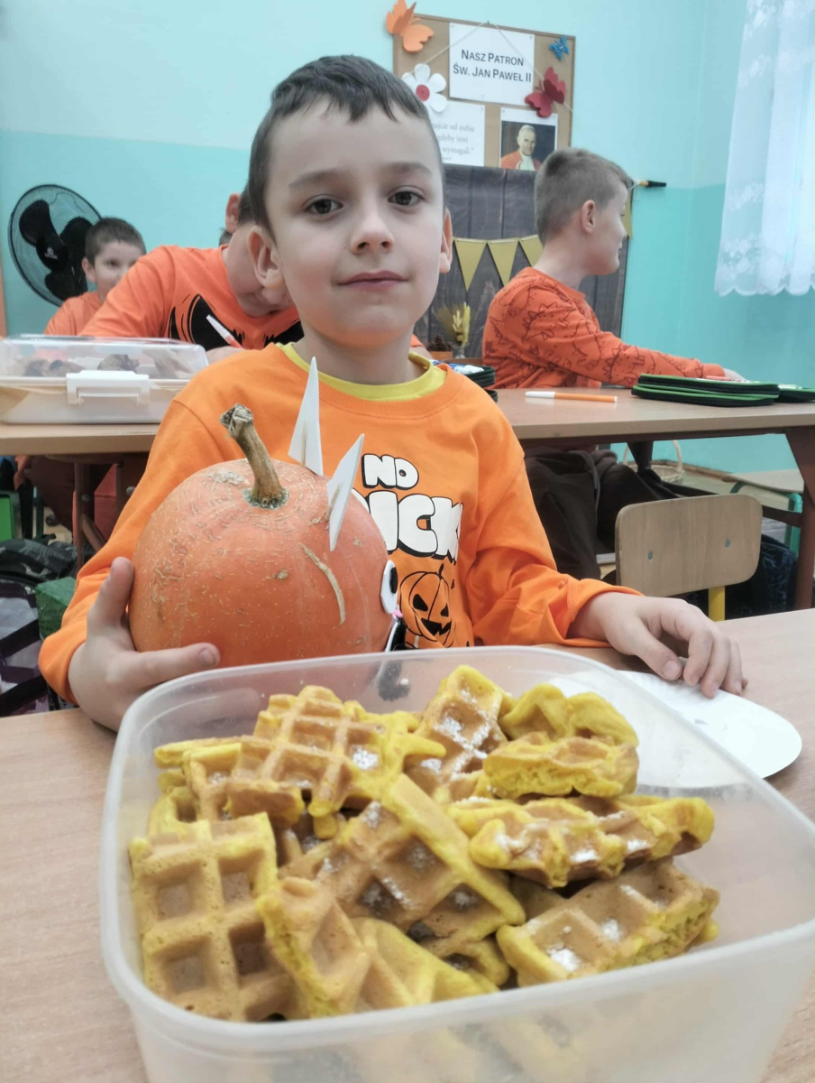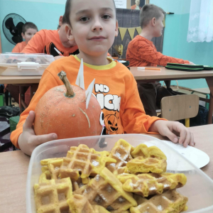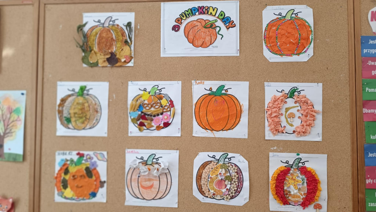 Podczas lekcji języka angielskiego uczniowie odkrywali, dlaczego dynia jest tak zdrowa i wartościowa. Dowiedzieli się, jakie ma właściwości odżywcze oraz jak można włączyć ją do codziennej diety. Lekcja zakończyła się wspólnym śpiewaniem piosenki o dyni i wykonaniem kolorowych prac plastycznych poświęconych temu wyjątkowemu warzywu. Również z okazji Dnia Dyni uczniowie klas 1–3 wzięli udział w wyjątkowej sesji zdjęciowej. Dzieci przyniosły do szkoły własnoręcznie ozdobione dynie, a ich stroje i uśmiechy wprowadziły prawdziwie jesienny nastrój. Podczas sesji nie zabrakło dobrej zabawy, śmiechu i kreatywnych pomysłów. To był wspaniały dzień, pełen kolorów i pozytywnej energii, który na długo pozostanie w pamięci najmłodszych uczniów.