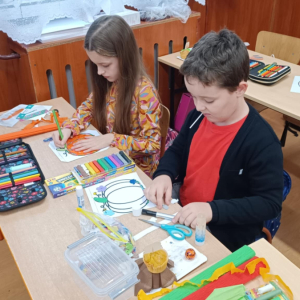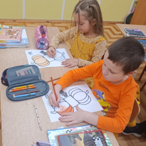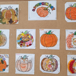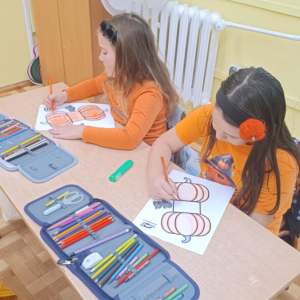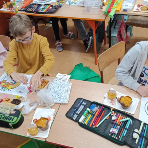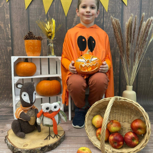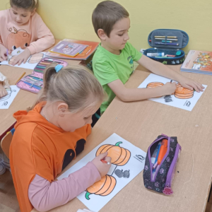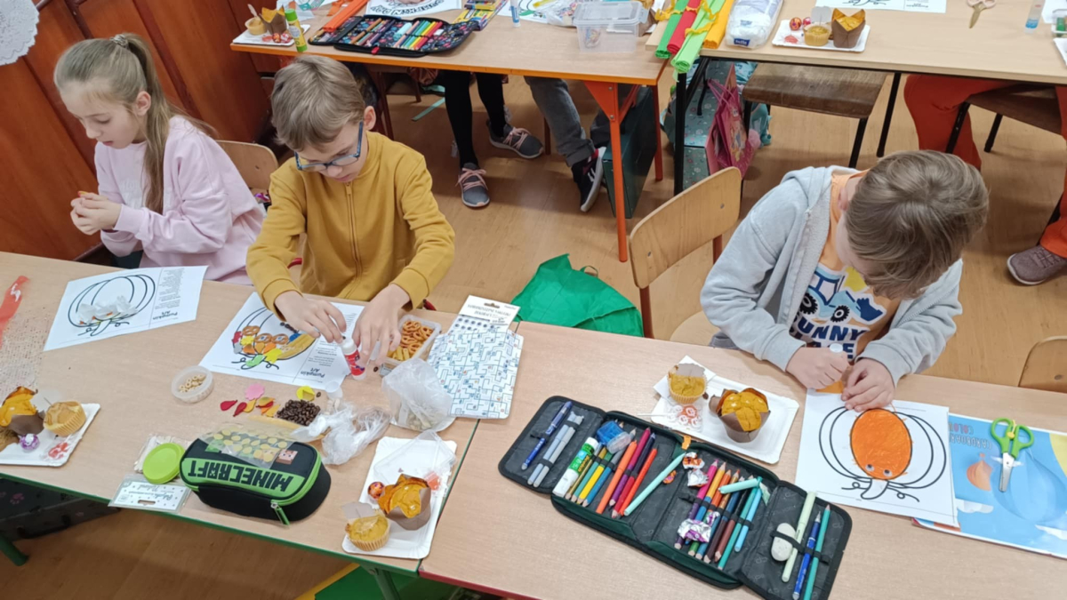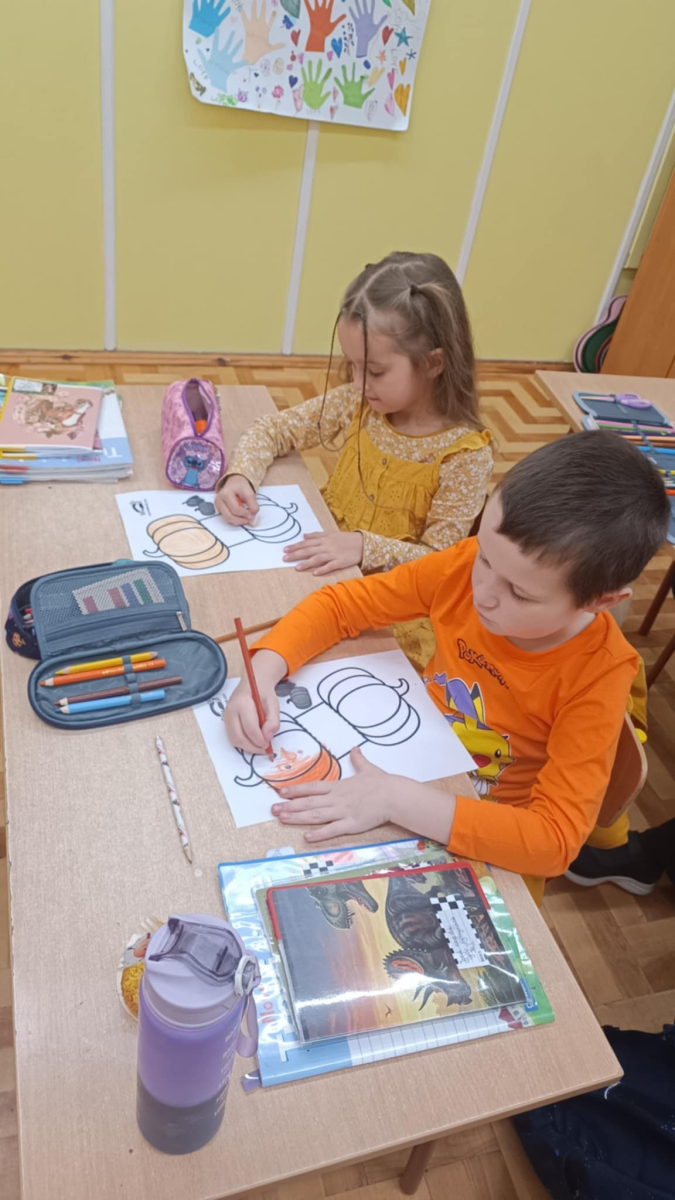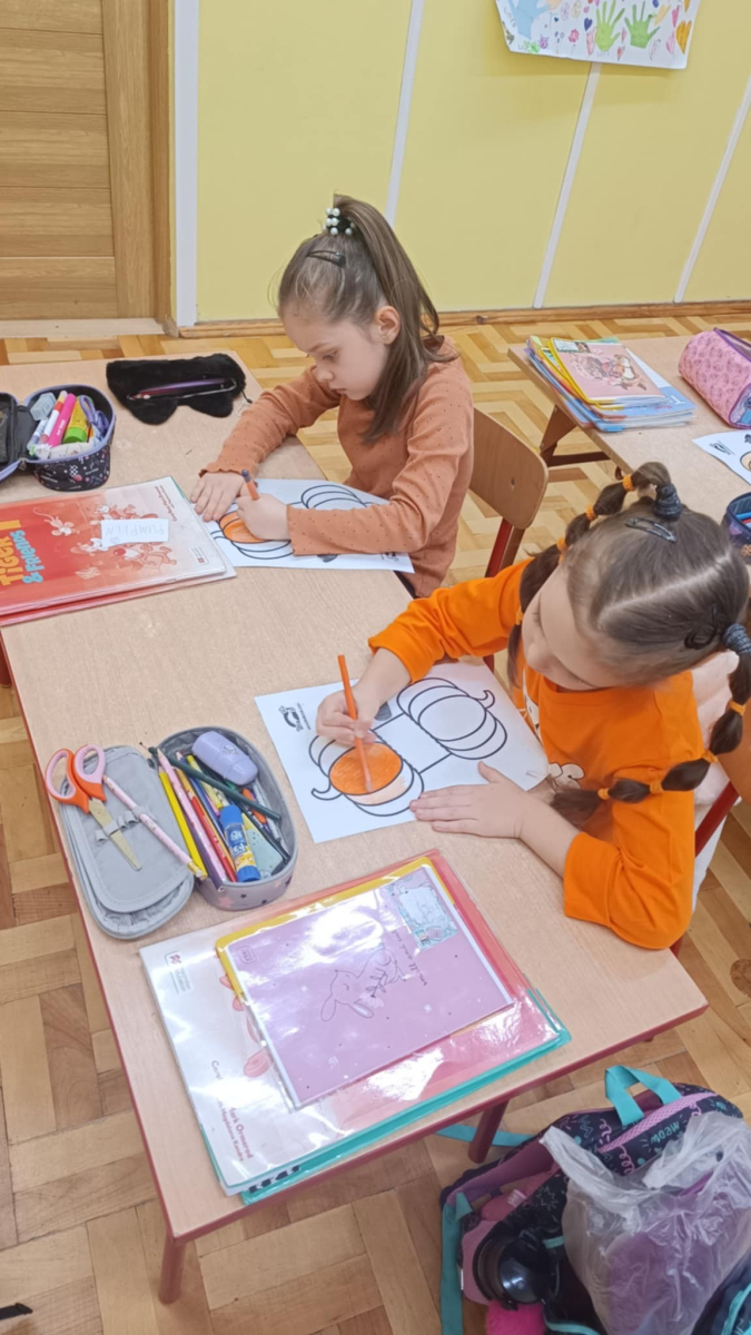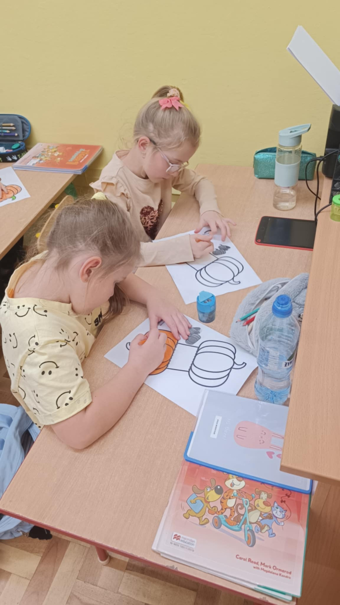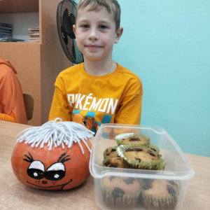 Podczas lekcji języka angielskiego uczniowie odkrywali, dlaczego dynia jest tak zdrowa i wartościowa. Dowiedzieli się, jakie ma właściwości odżywcze oraz jak można włączyć ją do codziennej diety. Lekcja zakończyła się wspólnym śpiewaniem piosenki o dyni i wykonaniem kolorowych prac plastycznych poświęconych temu wyjątkowemu warzywu. Również z okazji Dnia Dyni uczniowie klas 1–3 wzięli udział w wyjątkowej sesji zdjęciowej. Dzieci przyniosły do szkoły własnoręcznie ozdobione dynie, a ich stroje i uśmiechy wprowadziły prawdziwie jesienny nastrój. Podczas sesji nie zabrakło dobrej zabawy, śmiechu i kreatywnych pomysłów. To był wspaniały dzień, pełen kolorów i pozytywnej energii, który na długo pozostanie w pamięci najmłodszych uczniów.