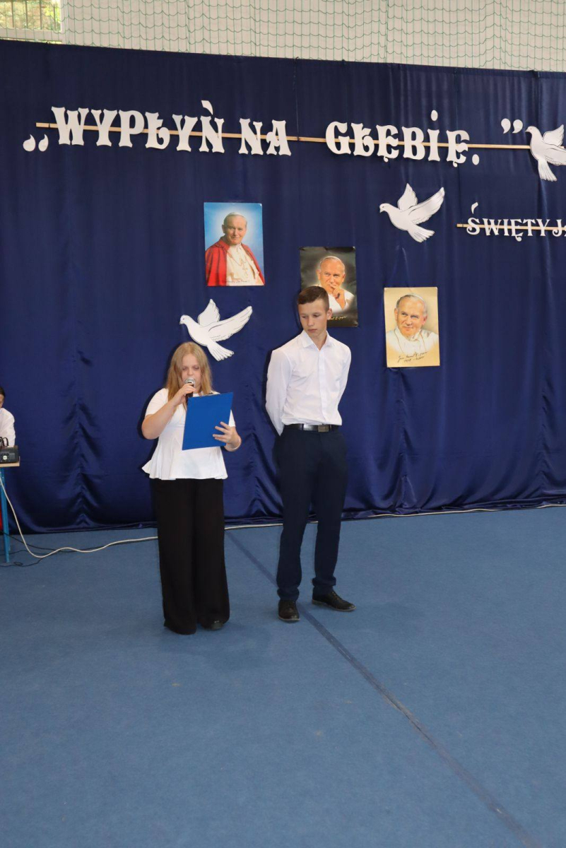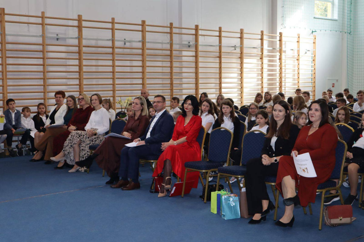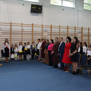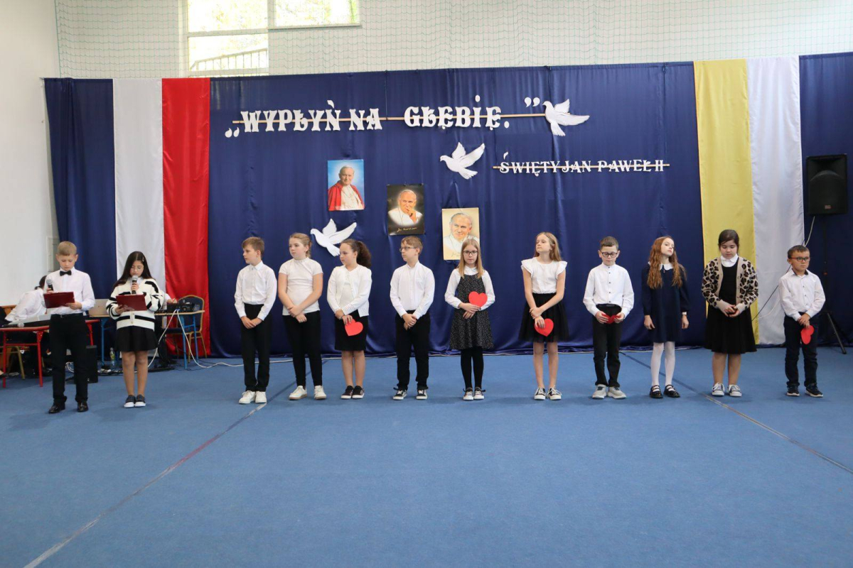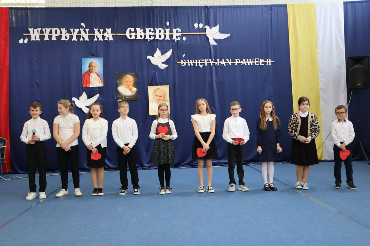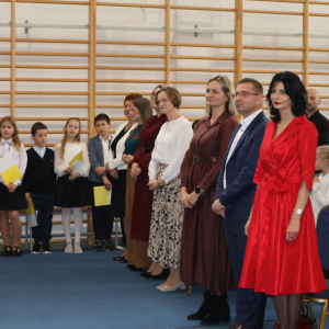 Jak co roku w naszej szkole obchodziliśmy Dzień Edukacji Narodowej. Uczniowie klasy IV przedstawili program artystyczny z okazji Dnia Nauczyciela przygotowany pod kierunkiem wychowawczyni Pani Bernadety Gąsior. Uczniowie w wierszach i piosenkach dziękowali nauczycielom: za trud, serce, cierpliwość; składali życzenia: wytrwałości i sukcesów. Następnie Pani Dyrektor wręczyła nagrody Dyrektora Szkoły dla nauczycieli i pracowników szkoły.