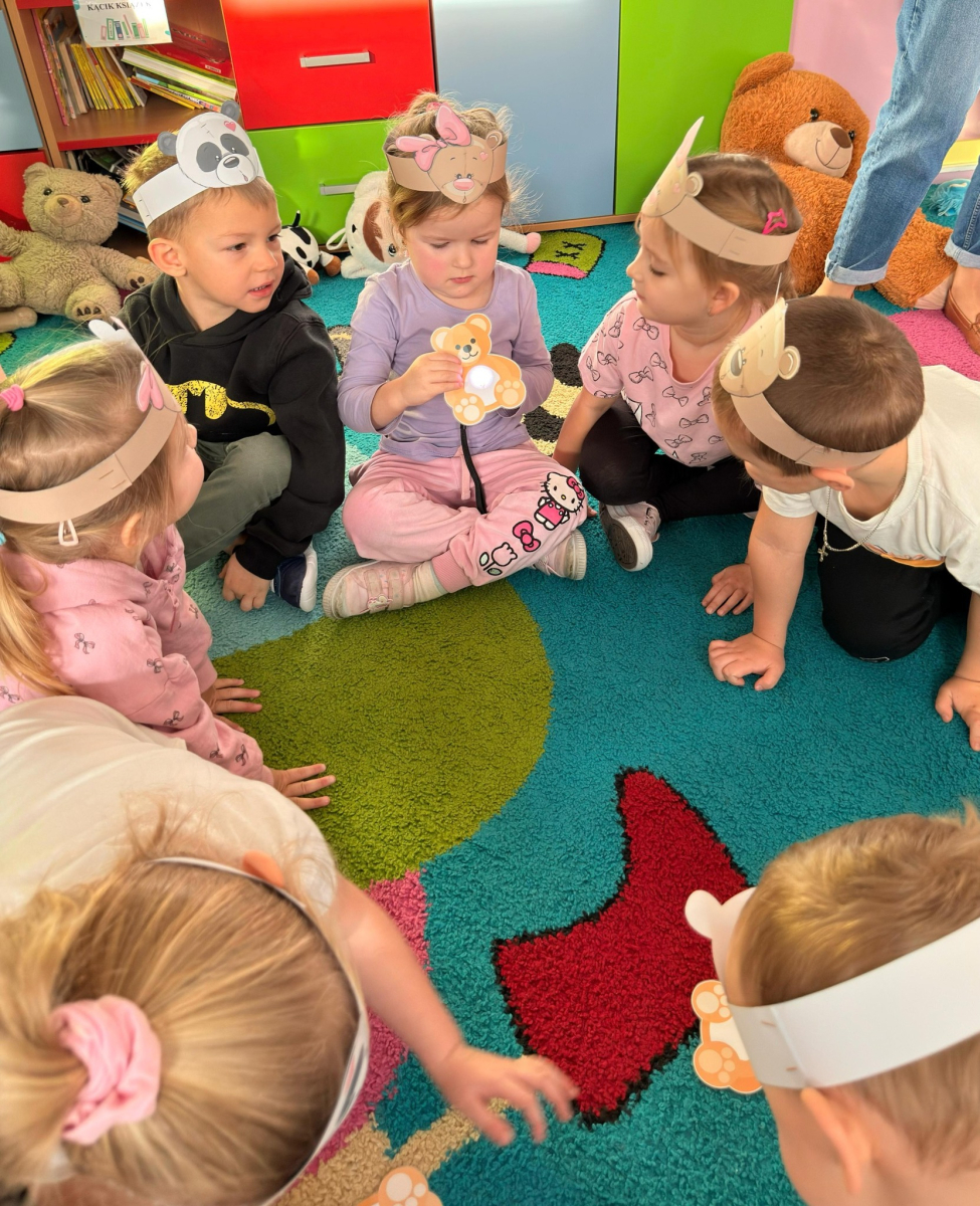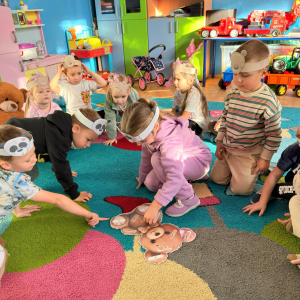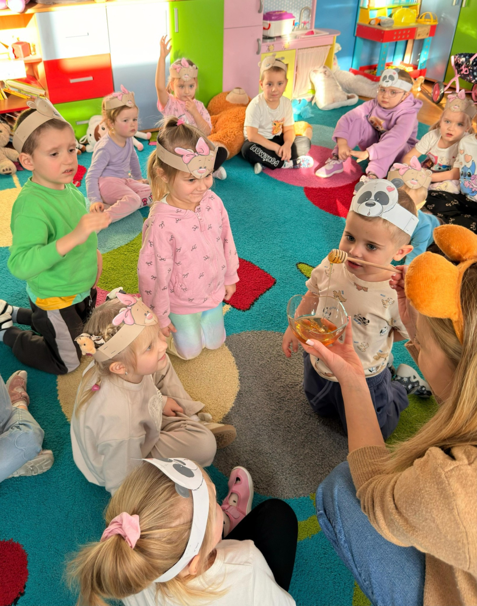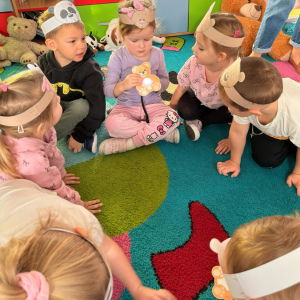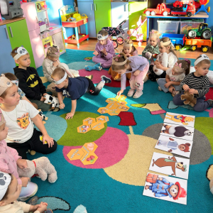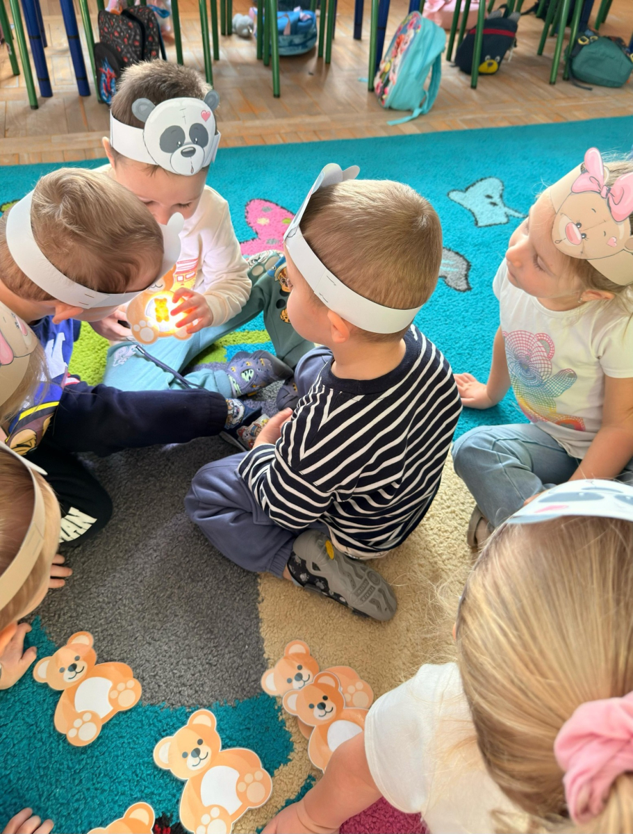 Z okazji święta misia dzieci przyniosły do przedszkola swoje ukochane misie i dowiedziały się, skąd wziął się pluszowy miś, poznając przy tym najsłynniejsze misie z bajek i książek. W świetle latarek zaglądały do tajemniczego brzuszka misia, odkrywając jego przysmaki , próbowały słodkiego miodku niczym prawdziwe niedźwiadki, a na koniec każdy przedszkolak namalował farbami własnego, niepowtarzalnego misia.