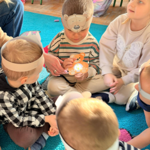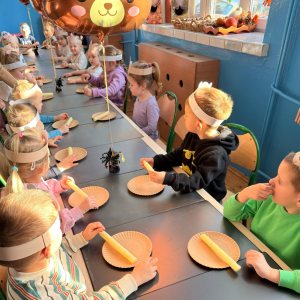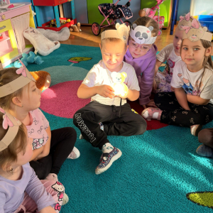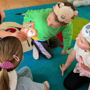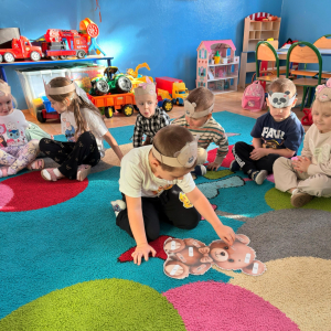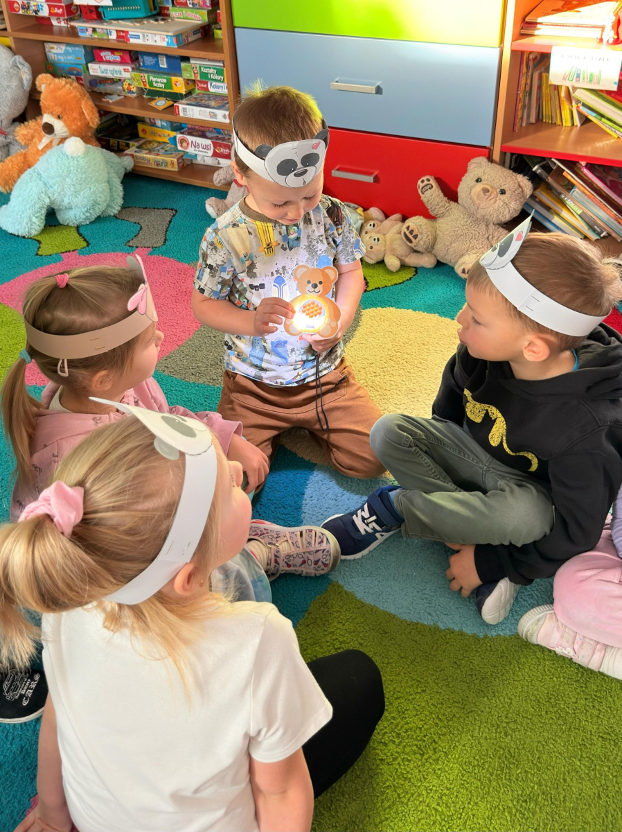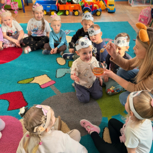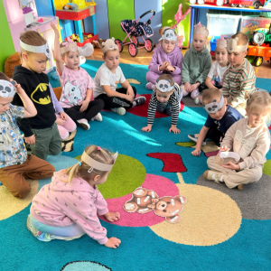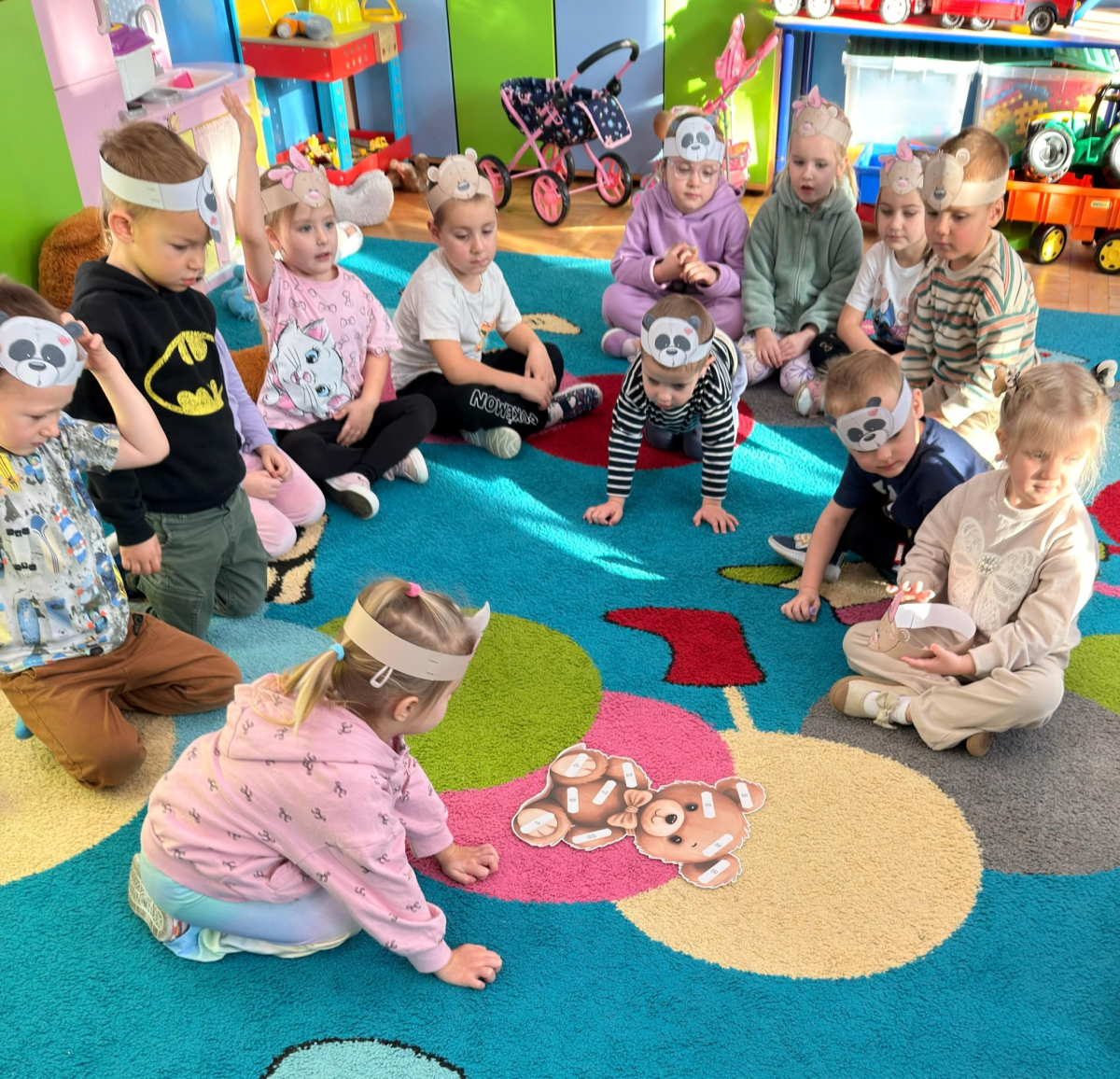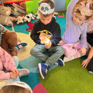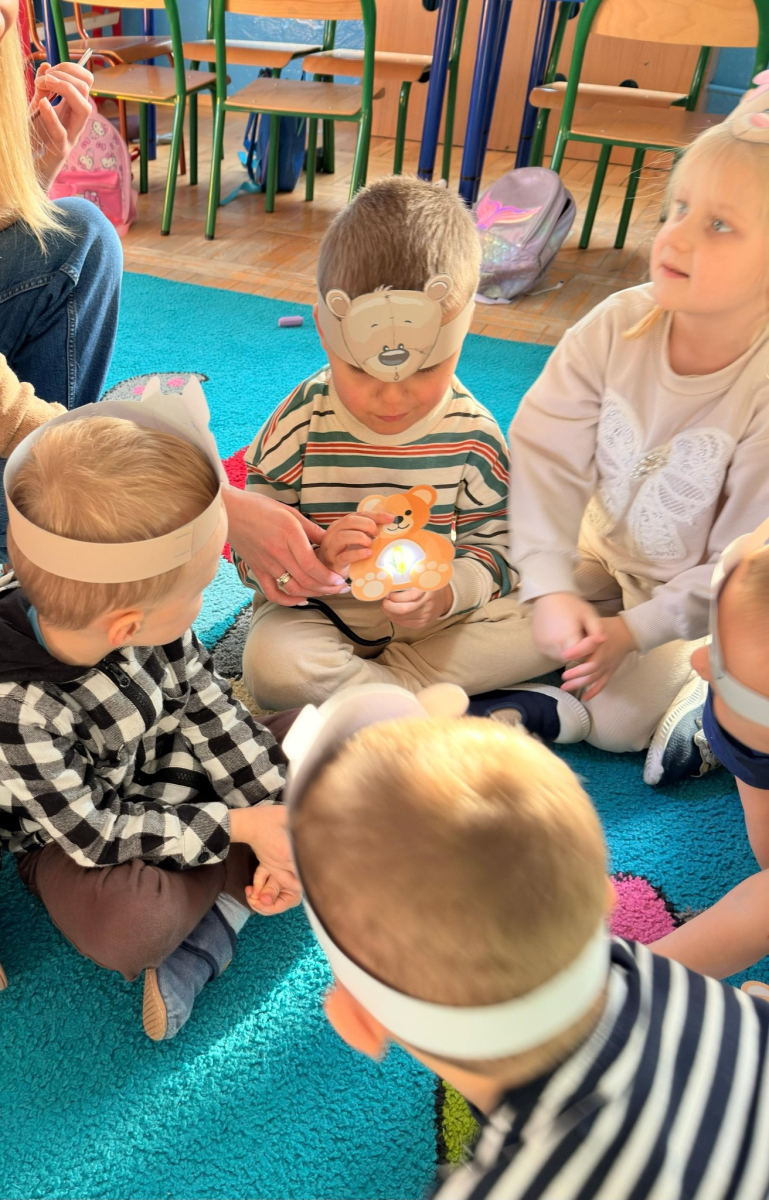 Z okazji święta misia dzieci przyniosły do przedszkola swoje ukochane misie i dowiedziały się, skąd wziął się pluszowy miś, poznając przy tym najsłynniejsze misie z bajek i książek. W świetle latarek zaglądały do tajemniczego brzuszka misia, odkrywając jego przysmaki , próbowały słodkiego miodku niczym prawdziwe niedźwiadki, a na koniec każdy przedszkolak namalował farbami własnego, niepowtarzalnego misia.