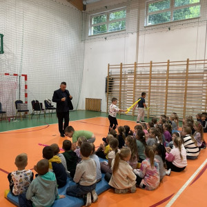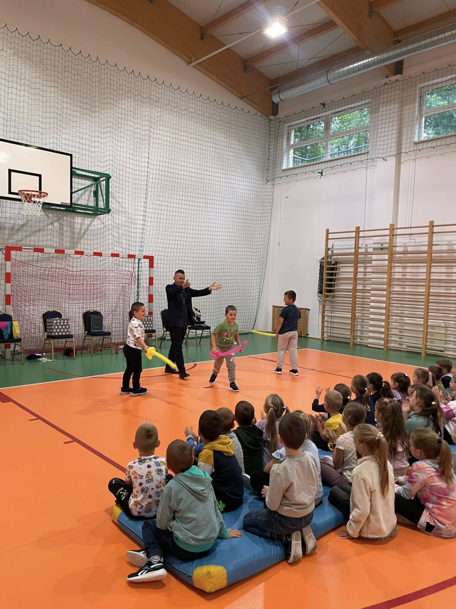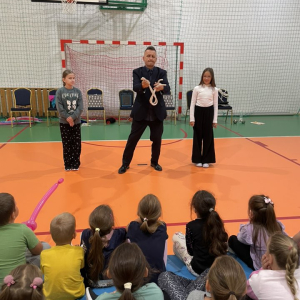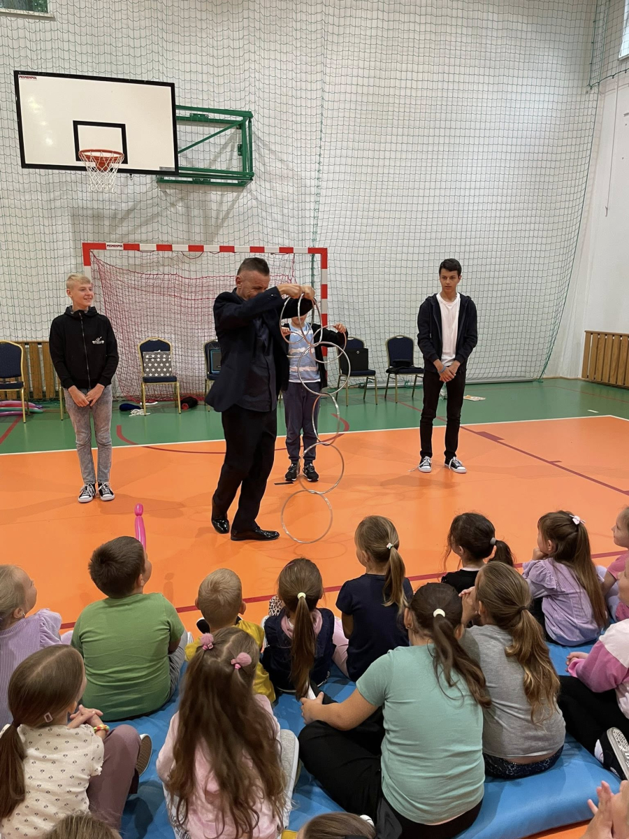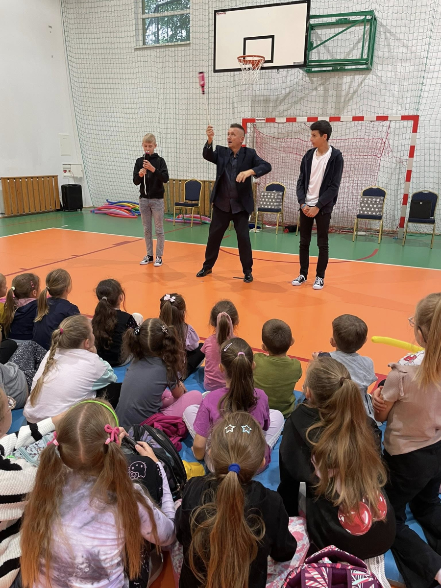 Dziś naszą szkołę odwiedził Ryszard Goclon – mistrz iluzji. Podczas godzinnego pokazu Magic Show zaprezentował wiele zabawnych i zaskakujących sztuczek – z kartami, piłeczkami, naczyniami pełnymi wody czy barwnymi chusteczkami. Do wspólnej zabawy zapraszał uczniów, dzięki czemu każdy mógł doświadczyć magii na własne oczy. Publiczność była oczarowana niezwykłymi zdolnościami iluzjonisty. Pokazowi towarzyszyła rytmiczna muzyka, podkreślająca różnorodne style i nastroje.