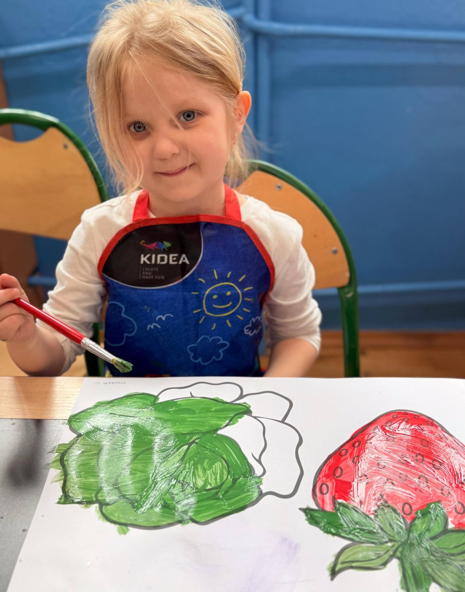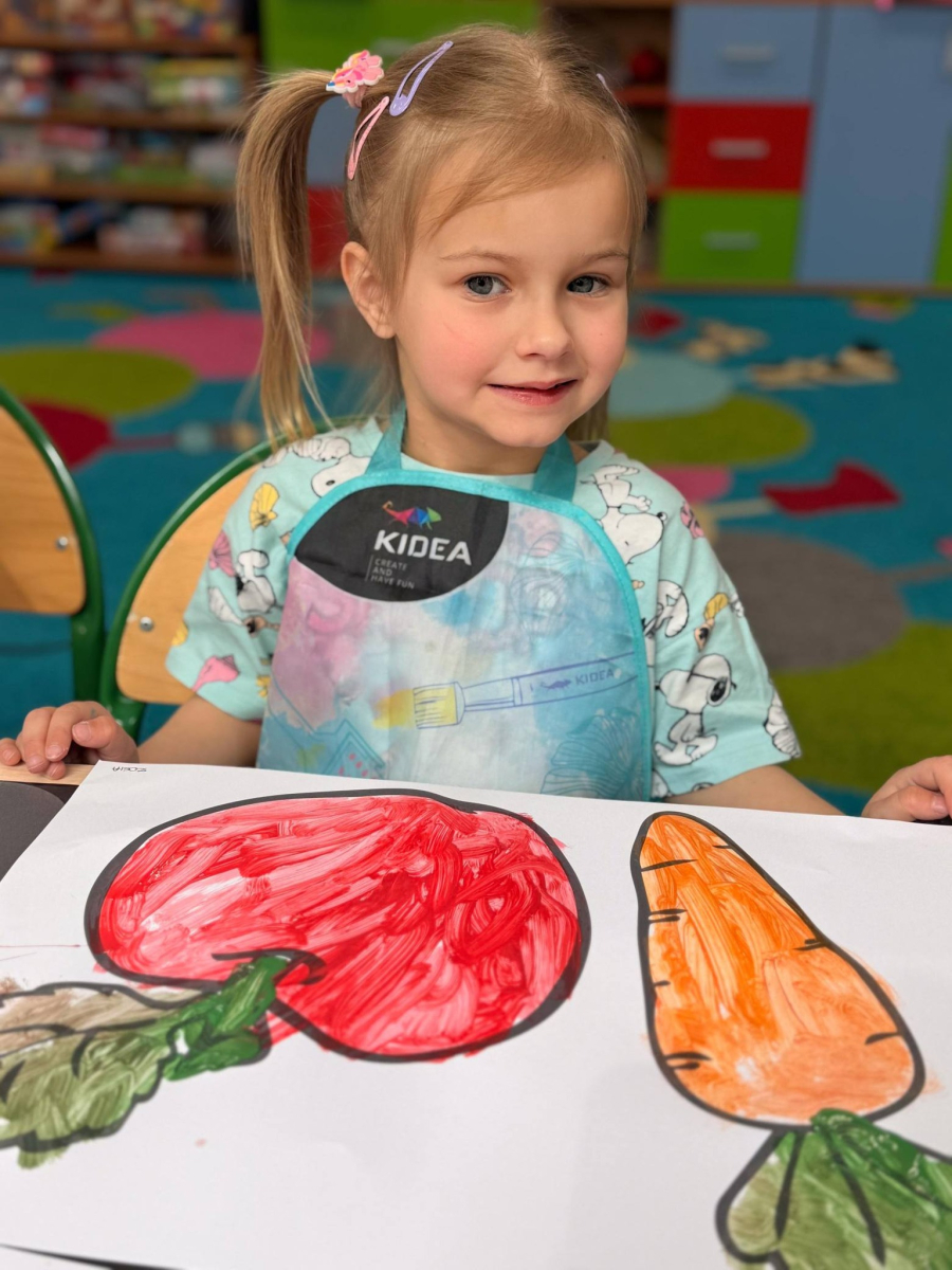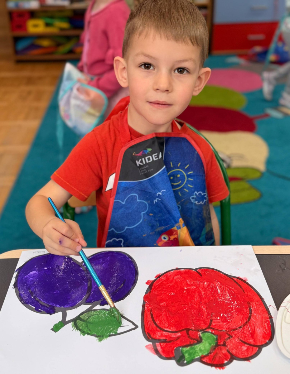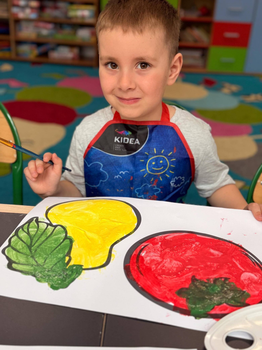 Nie zabrakło też kreatywnej części – dzieci malowały farbami wybrane owoce i warzywa.