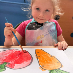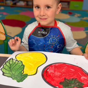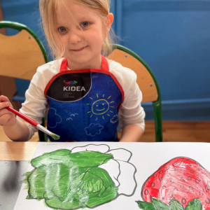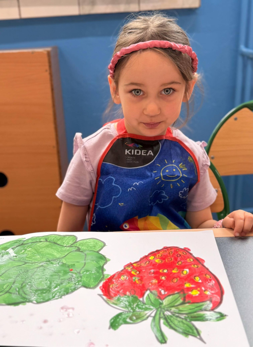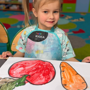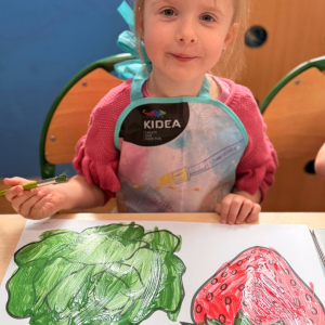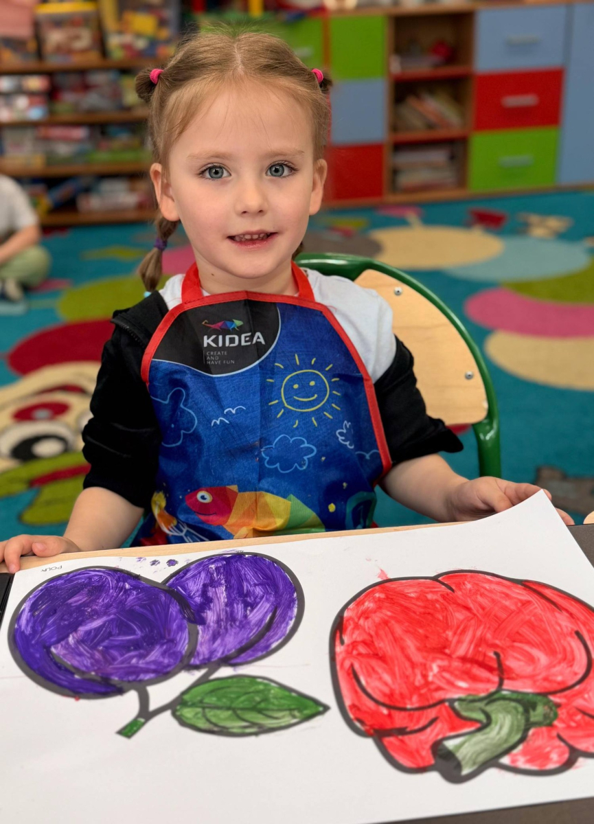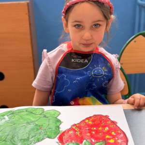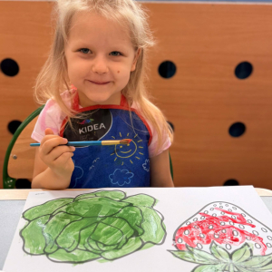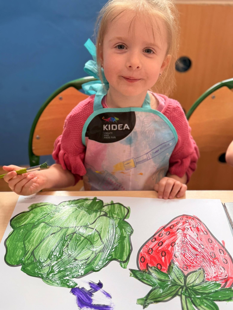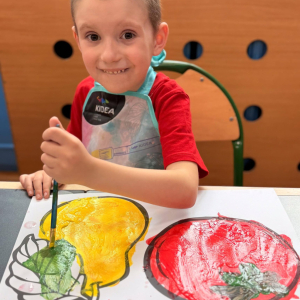 Nie zabrakło też kreatywnej części – dzieci malowały farbami wybrane owoce i warzywa.