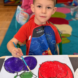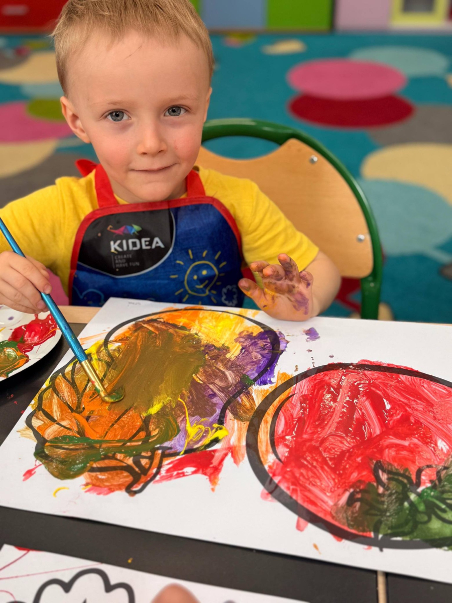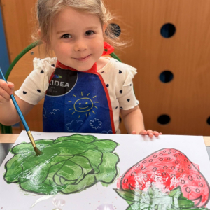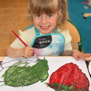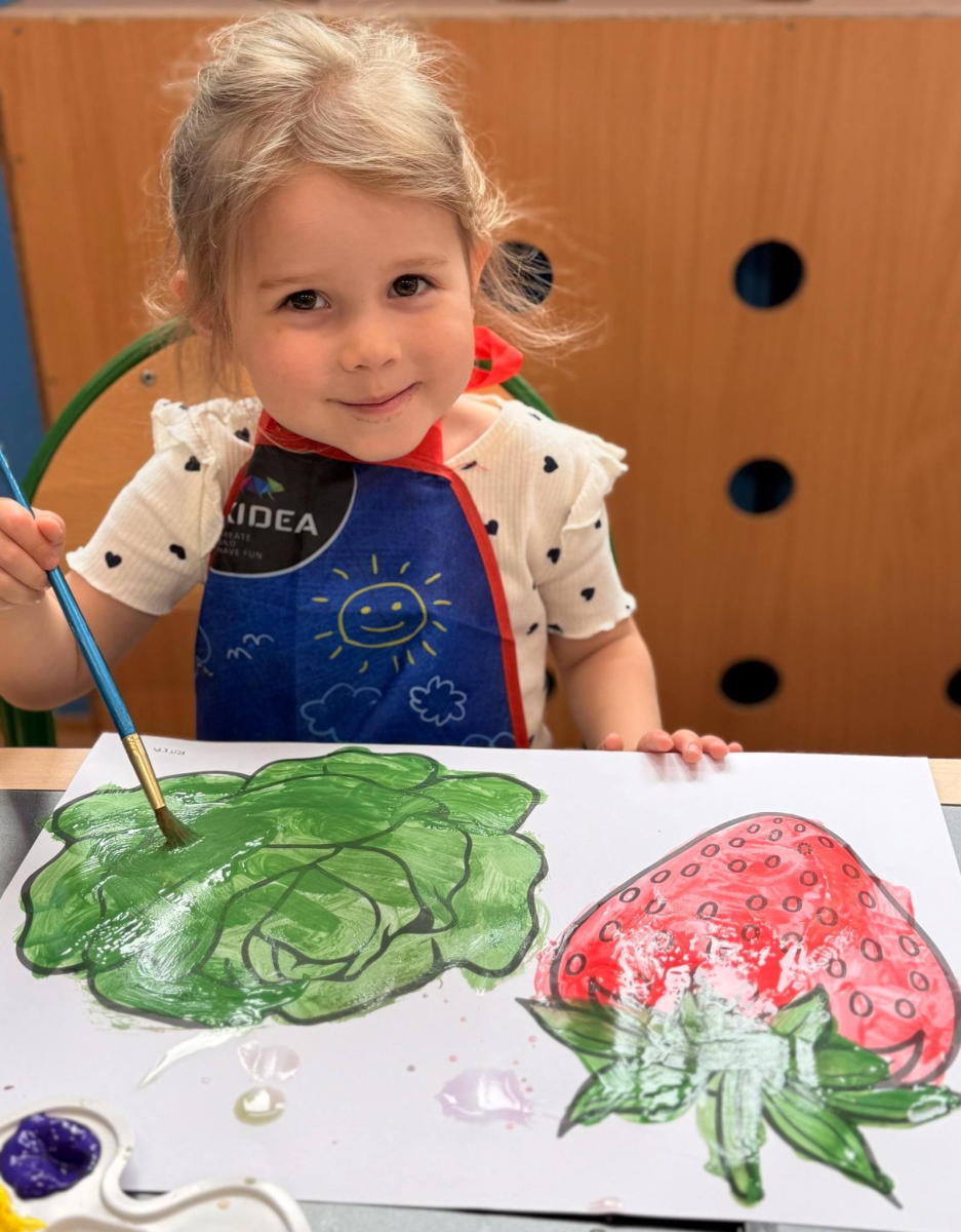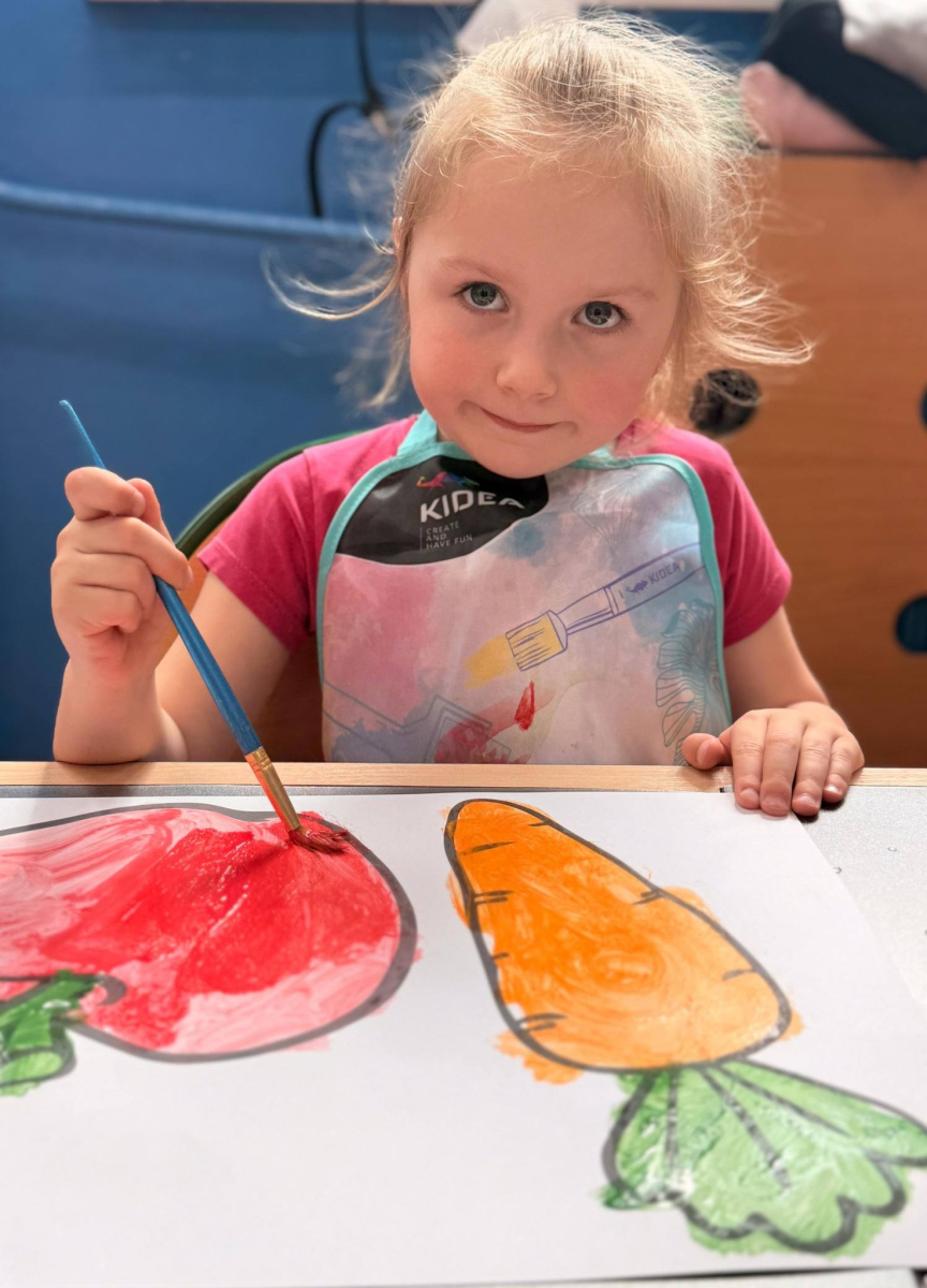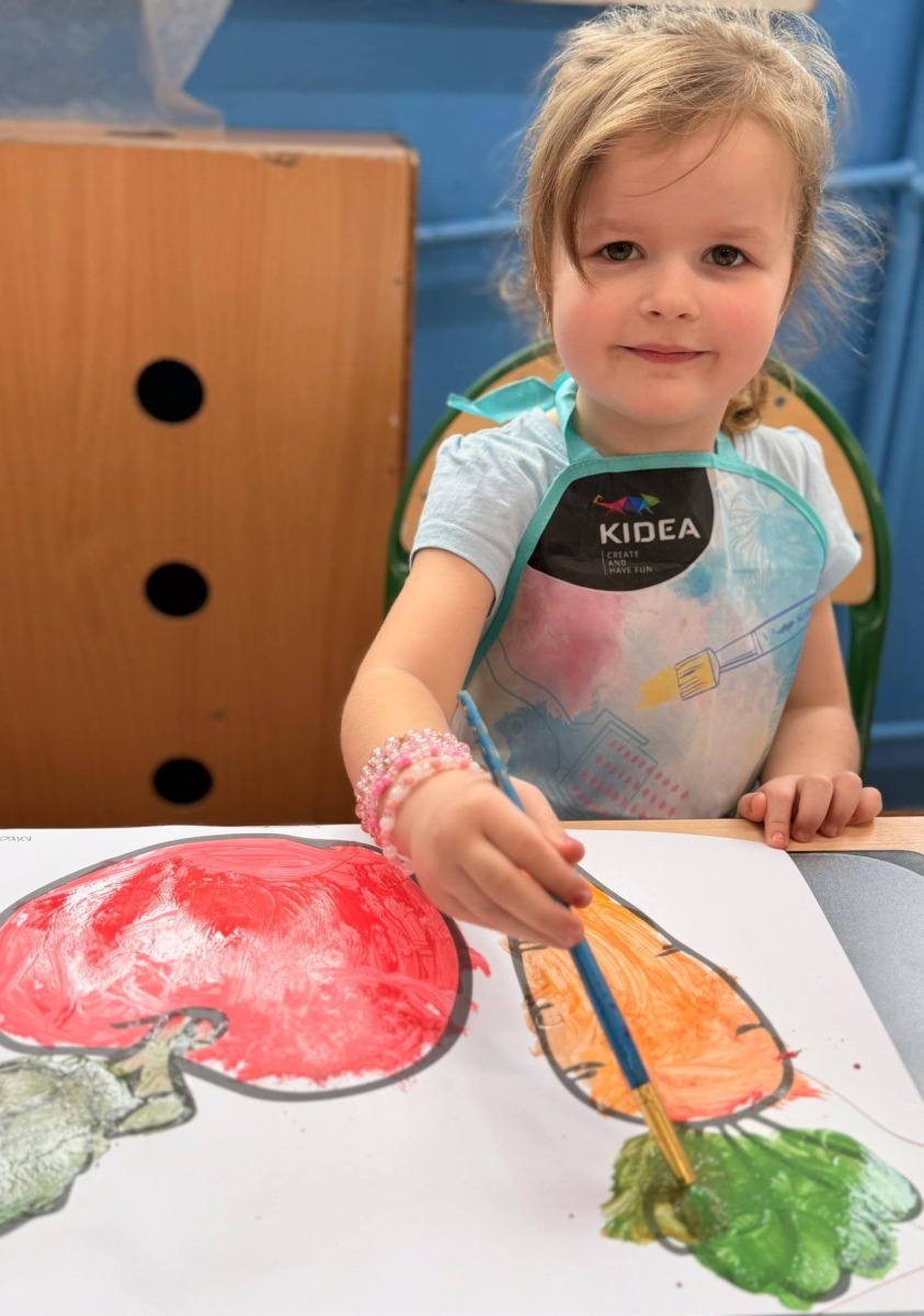Nie zabrakło też kreatywnej części – dzieci malowały farbami wybrane owoce i warzywa.