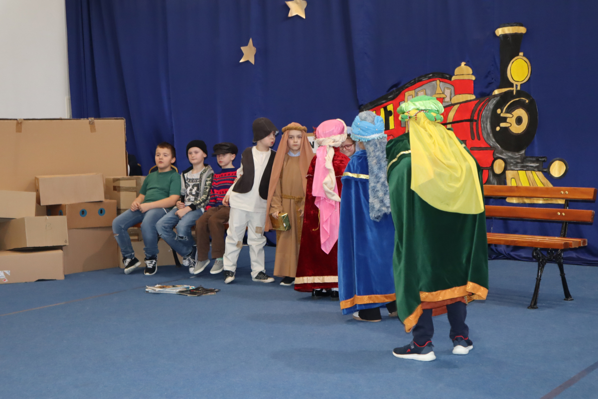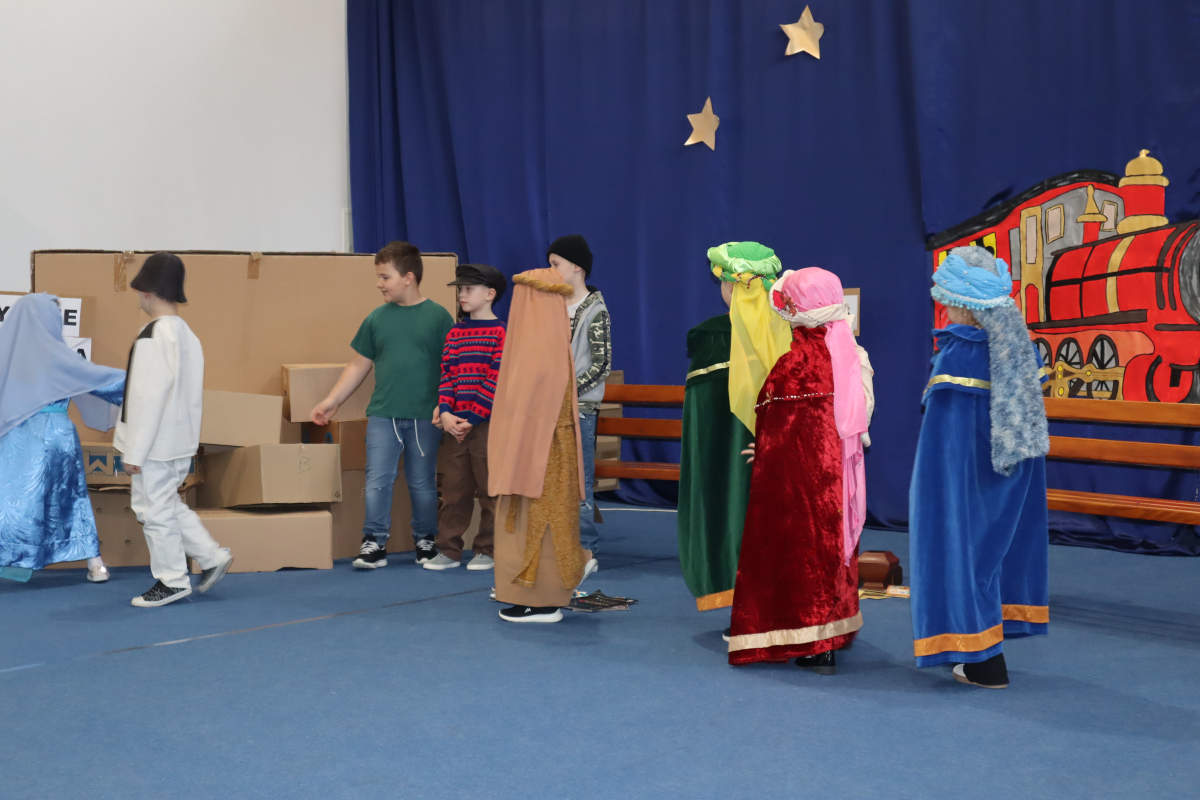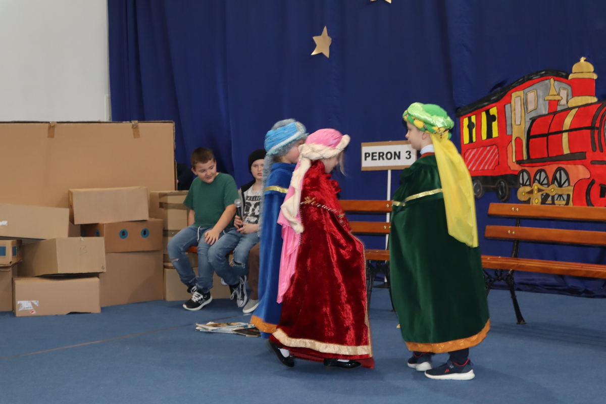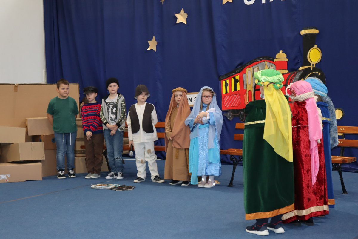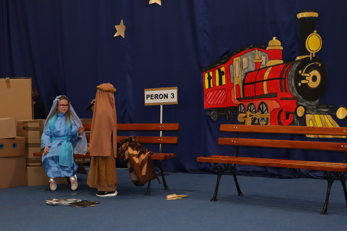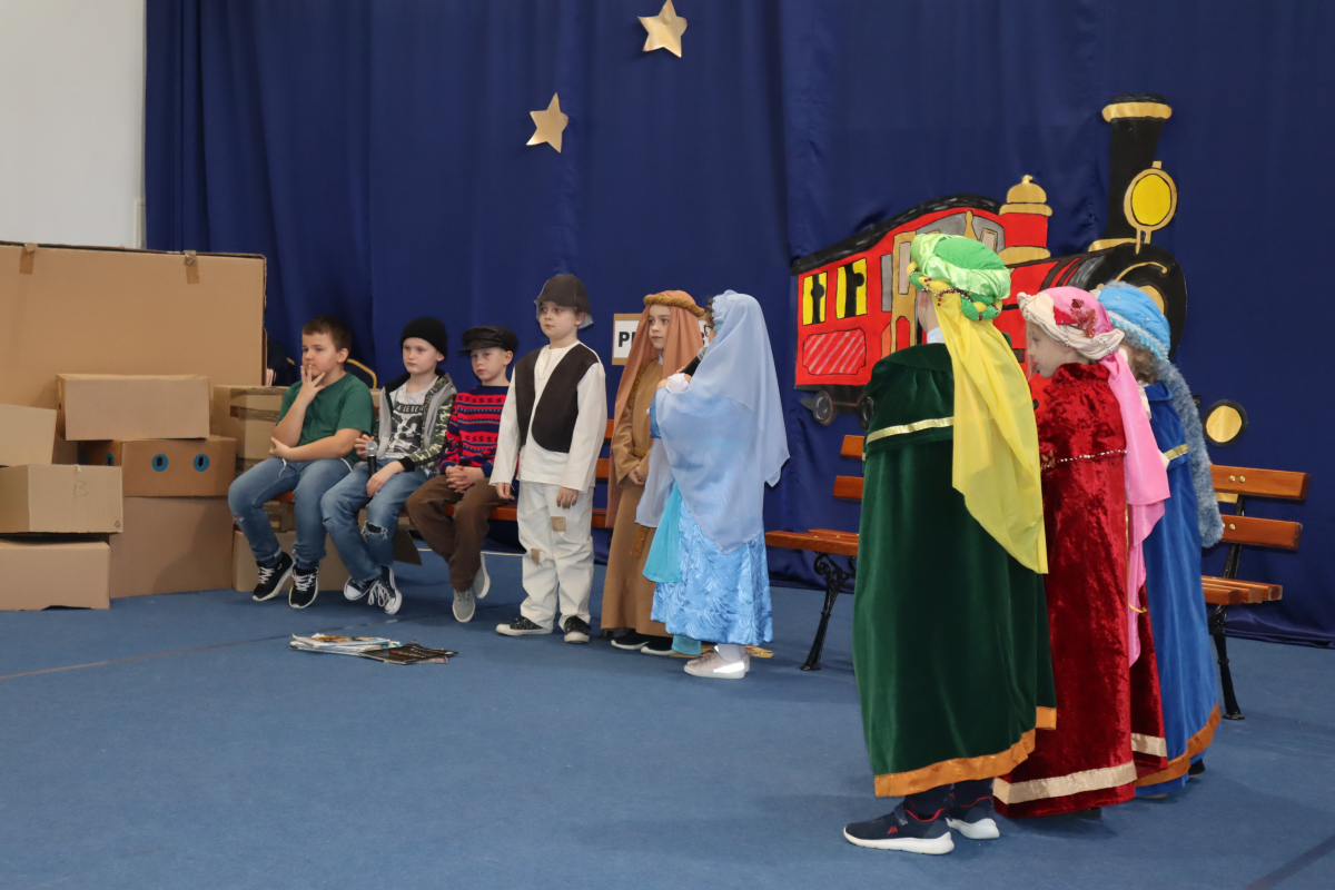 19 grudnia 2025 r. klasa II naszej szkoły poprowadziła nas w Bożonarodzeniową podróż pociągiem Jezusa, przedstawiając "Jasełka na dworcu". Podróżowaliśmy przez codzienność naszego życia wraz ze Świętą Rodziną, mędrcami i pasterzem. Zatrzymaliśmy się na stacji "Glinik" , gdzie dołączyło do nas trzech bezdomnych, którzy odkryli na nowo sens życia, spotykając się z Nowonarodzonym Jezusem. Bo przecież pociąg Jezusa zatrzymuje się w każdym sercu i można do niego wsiąść zawsze, jeśli tylko tego pragniemy!