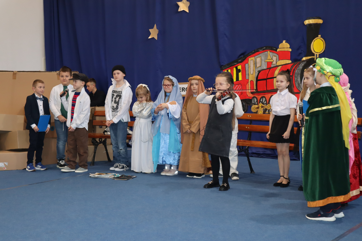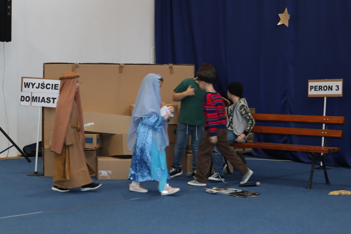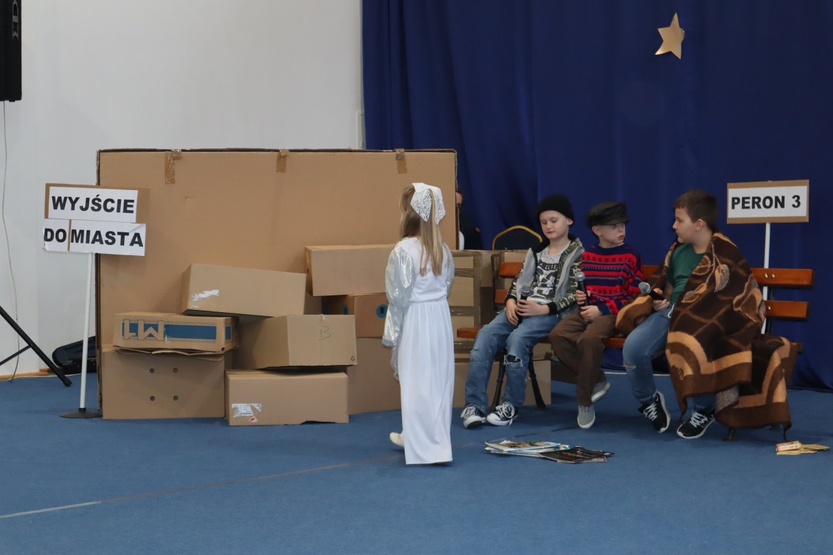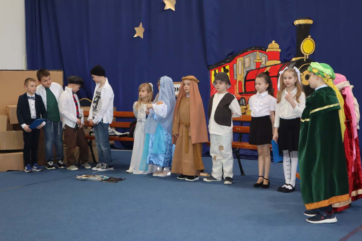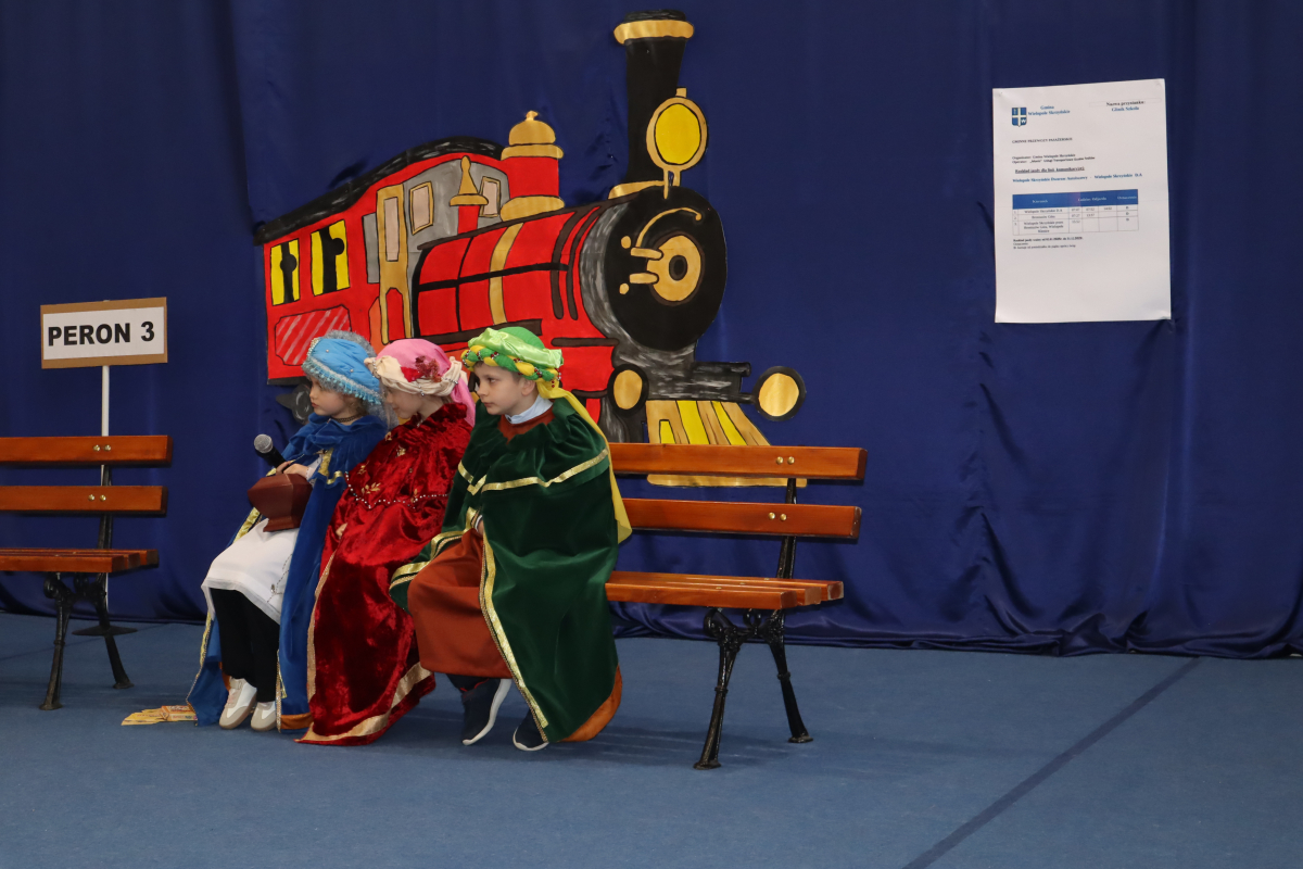 19 grudnia 2025 r. klasa II naszej szkoły poprowadziła nas w Bożonarodzeniową podróż pociągiem Jezusa, przedstawiając "Jasełka na dworcu". Podróżowaliśmy przez codzienność naszego życia wraz ze Świętą Rodziną, mędrcami i pasterzem. Zatrzymaliśmy się na stacji "Glinik" , gdzie dołączyło do nas trzech bezdomnych, którzy odkryli na nowo sens życia, spotykając się z Nowonarodzonym Jezusem. Bo przecież pociąg Jezusa zatrzymuje się w każdym sercu i można do niego wsiąść zawsze, jeśli tylko tego pragniemy!