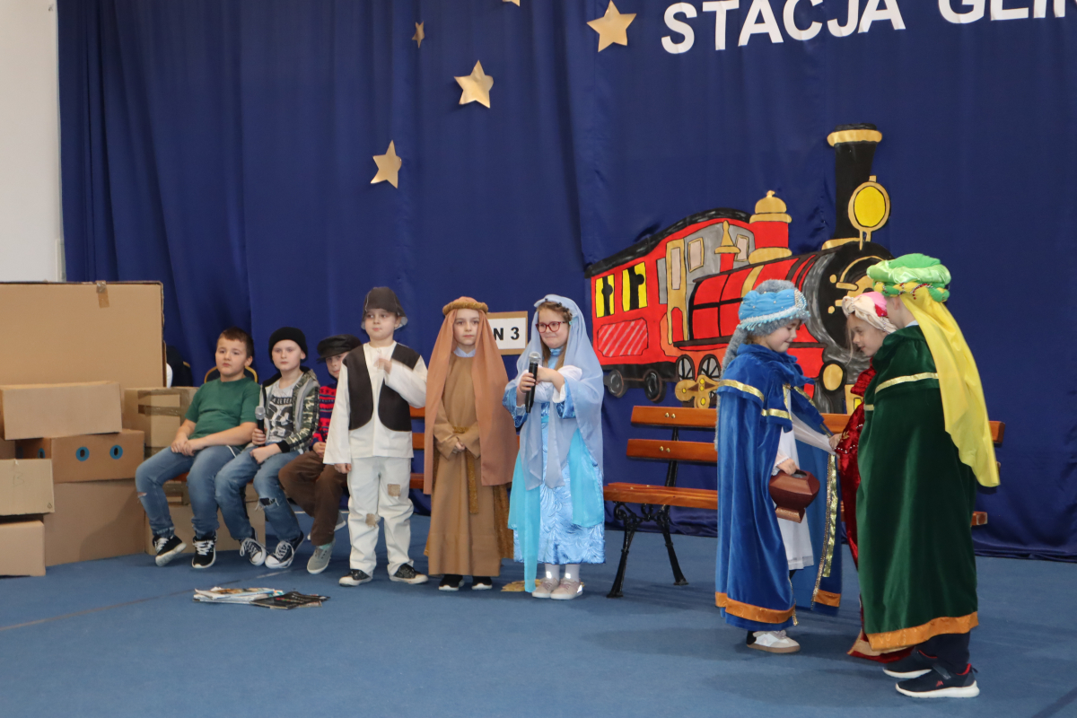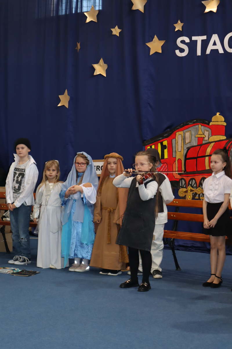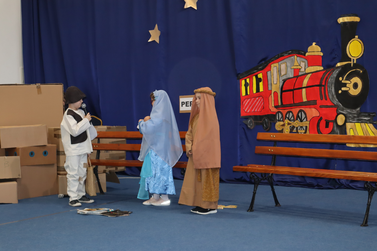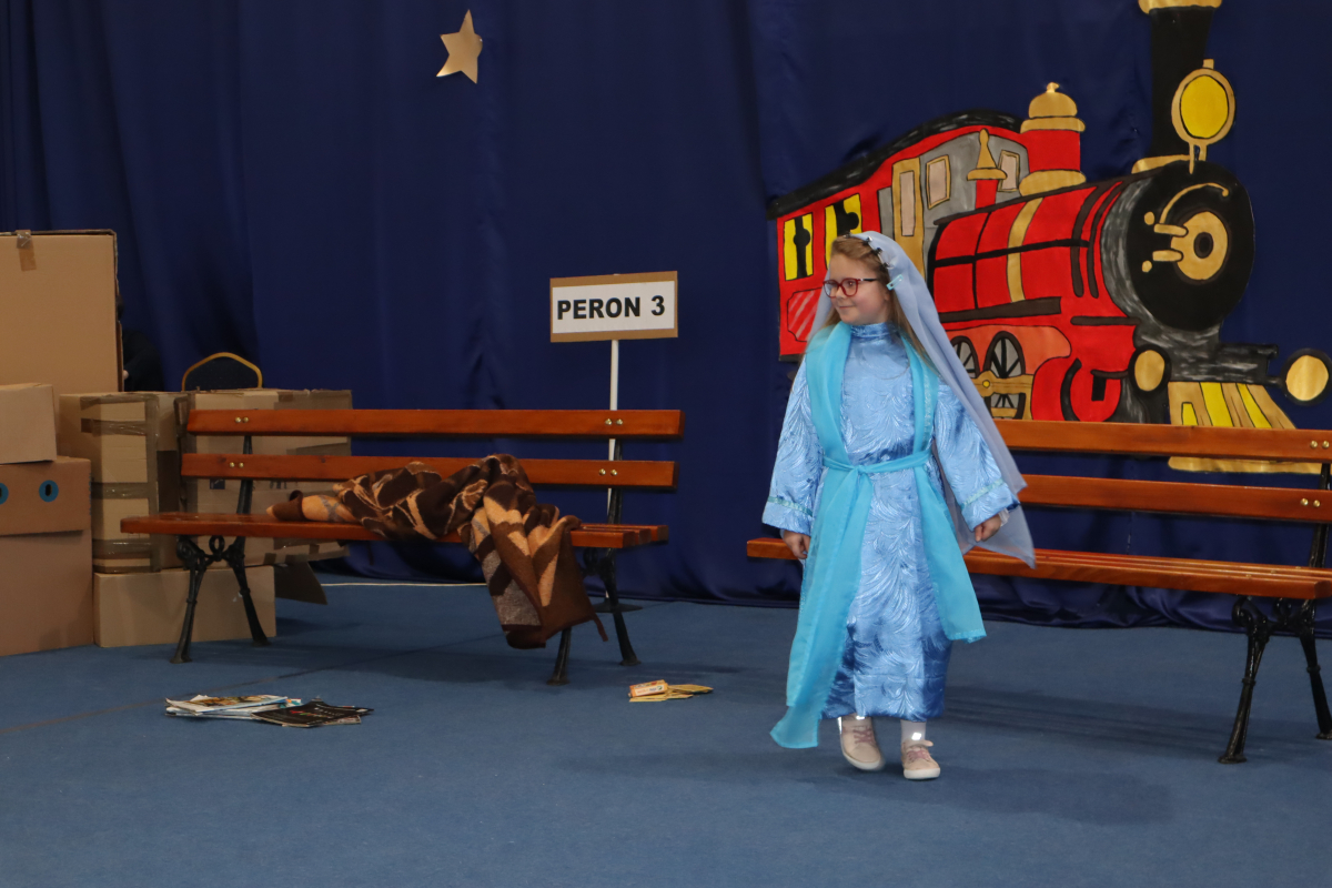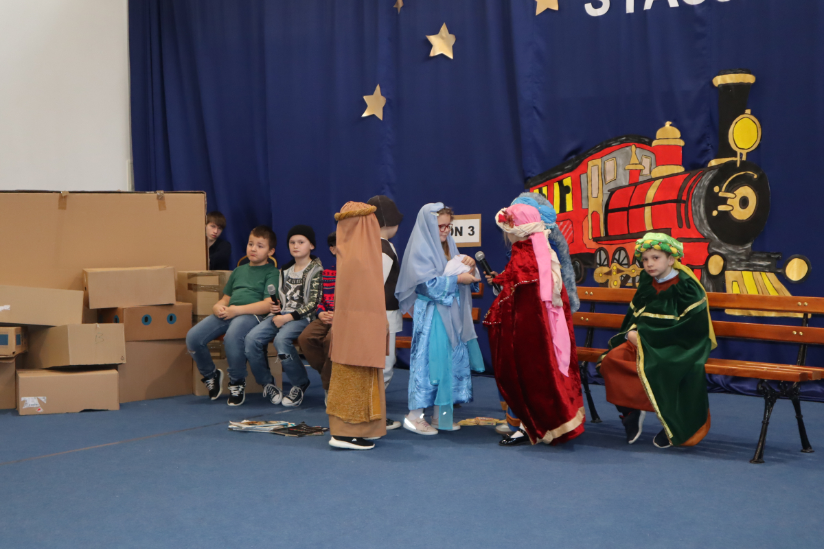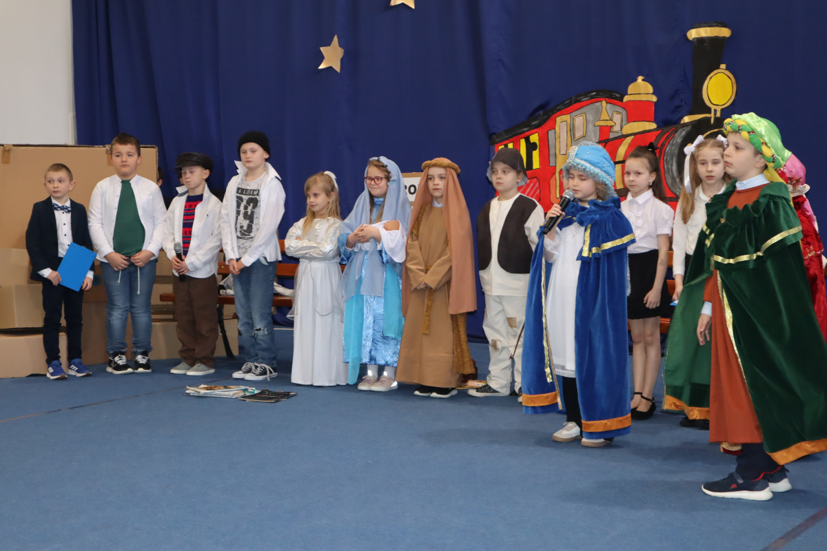 19 grudnia 2025 r. klasa II naszej szkoły poprowadziła nas w Bożonarodzeniową podróż pociągiem Jezusa, przedstawiając "Jasełka na dworcu". Podróżowaliśmy przez codzienność naszego życia wraz ze Świętą Rodziną, mędrcami i pasterzem. Zatrzymaliśmy się na stacji "Glinik" , gdzie dołączyło do nas trzech bezdomnych, którzy odkryli na nowo sens życia, spotykając się z Nowonarodzonym Jezusem. Bo przecież pociąg Jezusa zatrzymuje się w każdym sercu i można do niego wsiąść zawsze, jeśli tylko tego pragniemy!