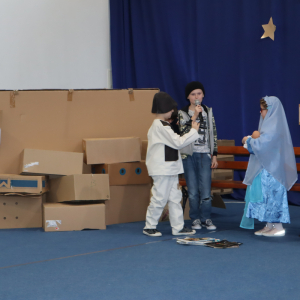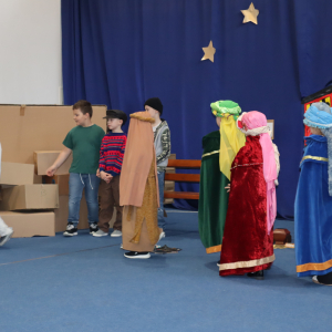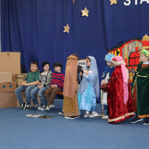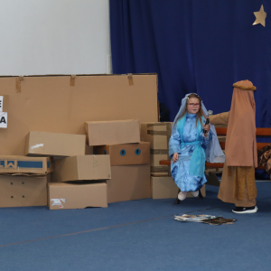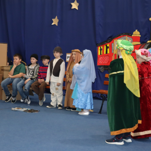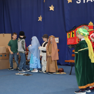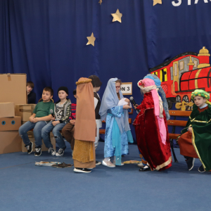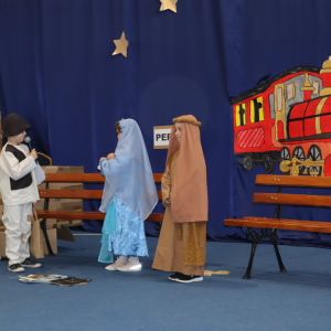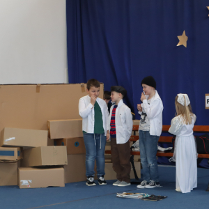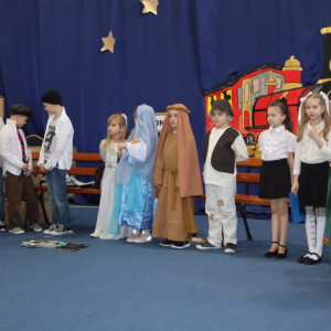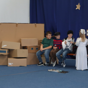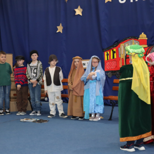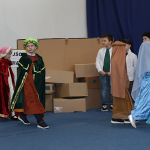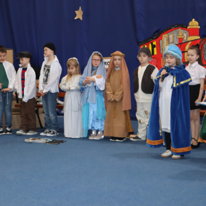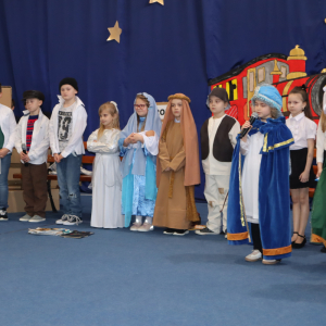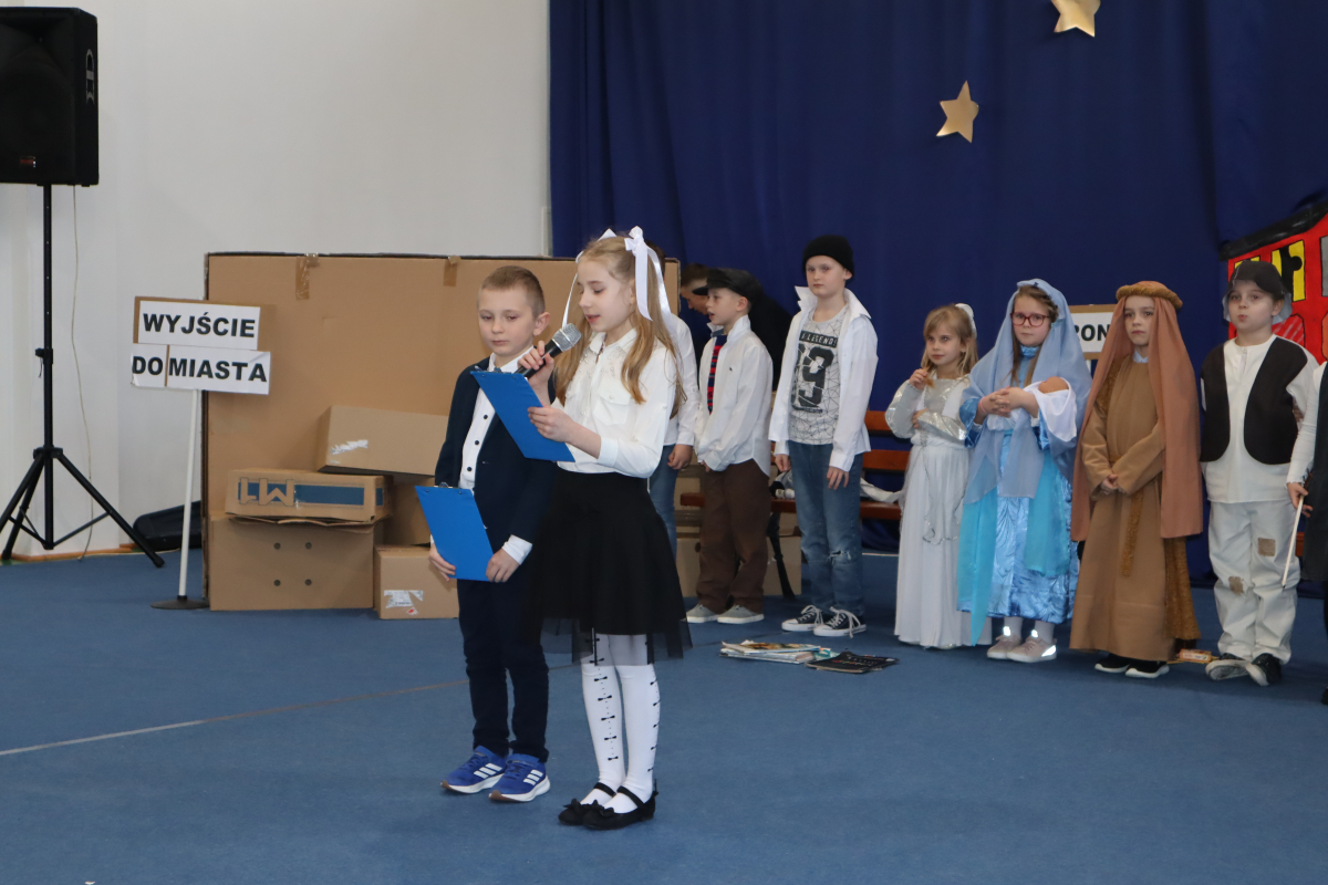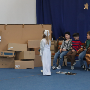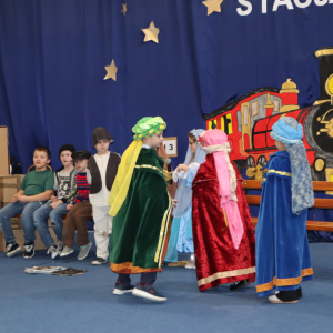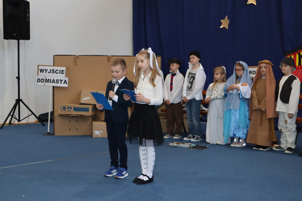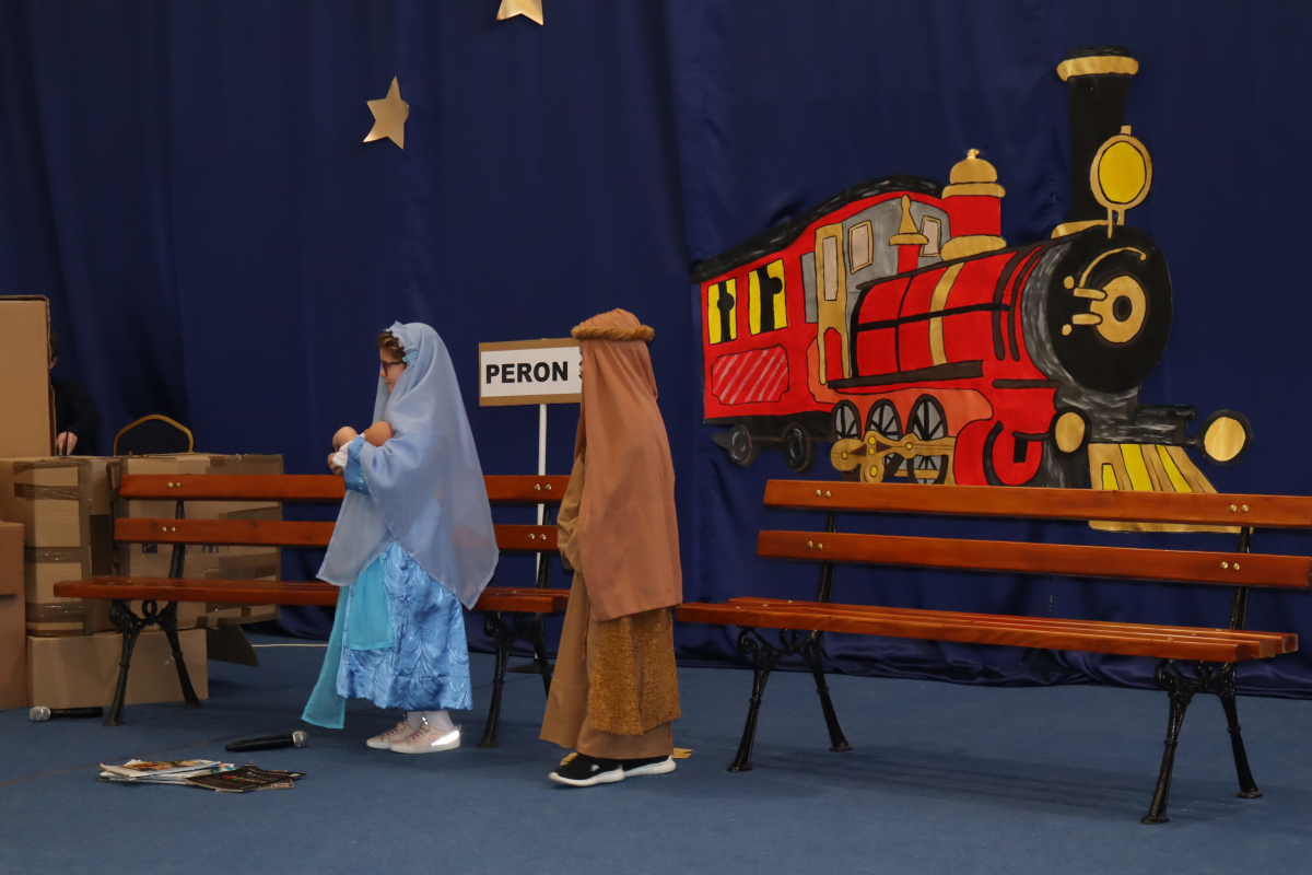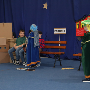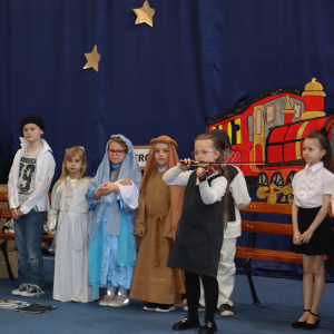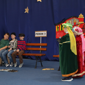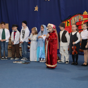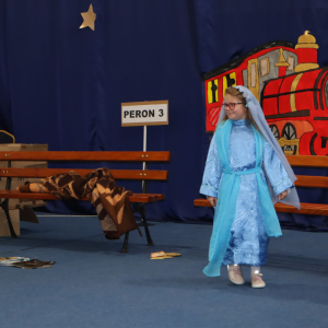 19 grudnia 2025 r. klasa II naszej szkoły poprowadziła nas w Bożonarodzeniową podróż pociągiem Jezusa, przedstawiając "Jasełka na dworcu". Podróżowaliśmy przez codzienność naszego życia wraz ze Świętą Rodziną, mędrcami i pasterzem. Zatrzymaliśmy się na stacji "Glinik" , gdzie dołączyło do nas trzech bezdomnych, którzy odkryli na nowo sens życia, spotykając się z Nowonarodzonym Jezusem. Bo przecież pociąg Jezusa zatrzymuje się w każdym sercu i można do niego wsiąść zawsze, jeśli tylko tego pragniemy!
