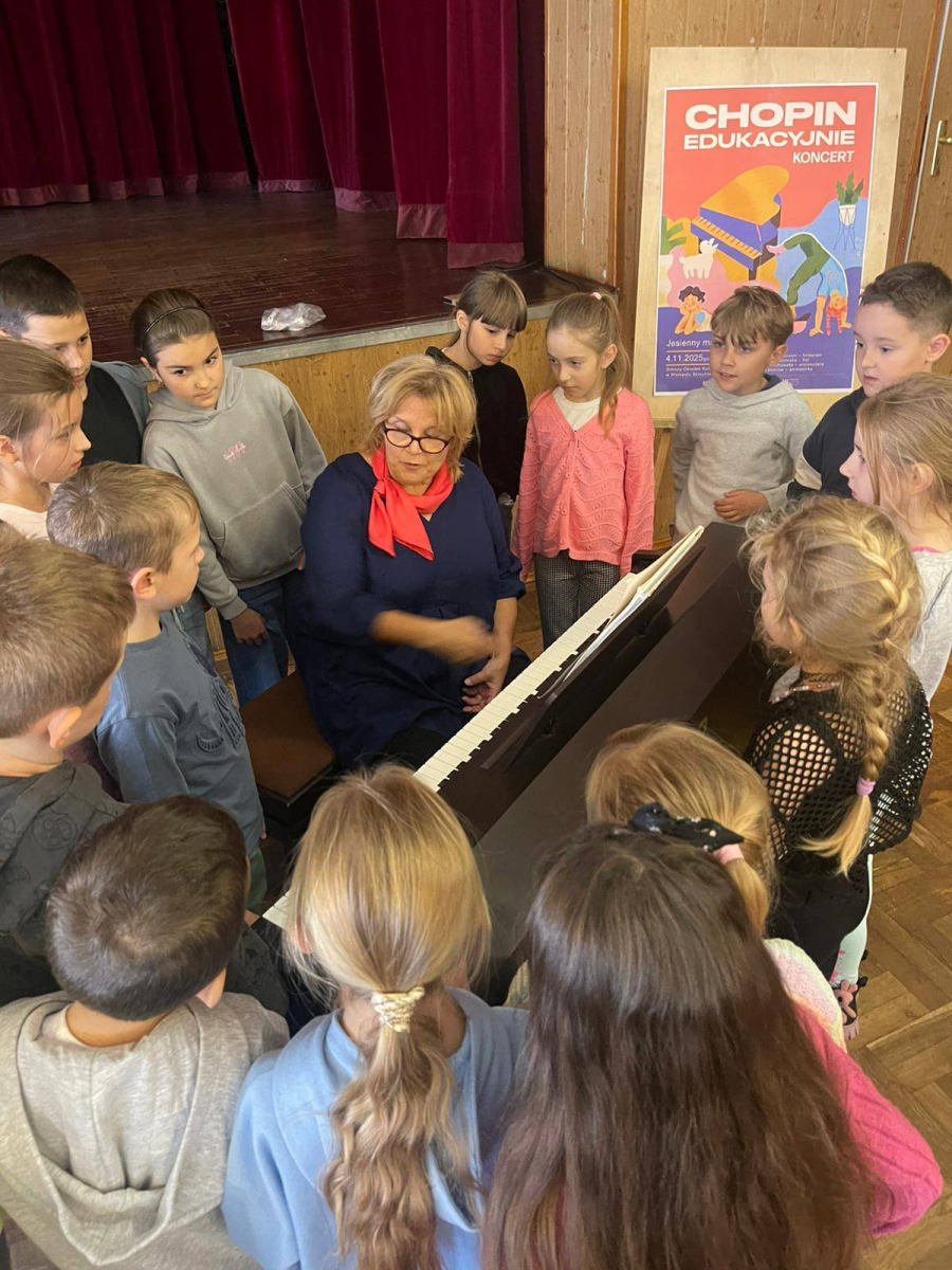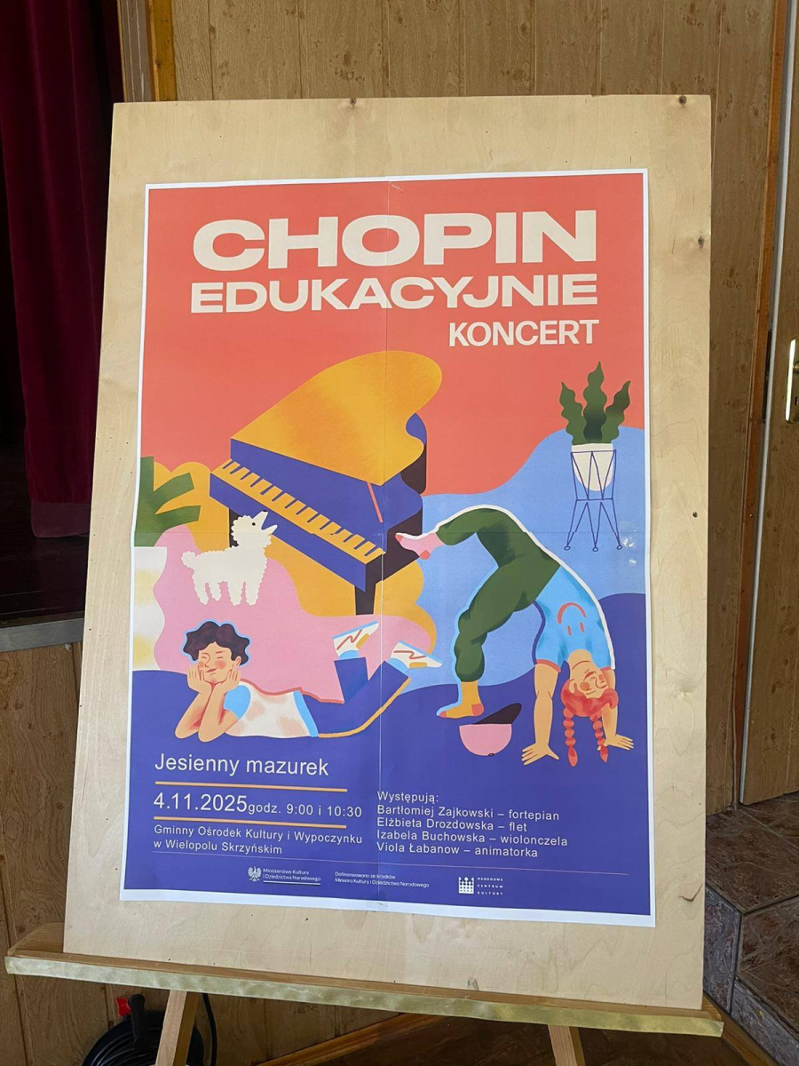 4 listopada uczniowie klas II i III wzięli udział w koncercie edukacyjnym zorganizowanym przez Gminny Ośrodek Kultury i Wypoczynku w Wielopolu Skrzyńskim. Po udziale w kilku lekcjach na temat instrumentów dętych, klawiszowych i strunowych wysłuchali pięknego koncertu z utworami Fryderyka Chopina. Uczniowie brali również czynny udział w koncercie śpiewając piosenki i tańcząc poloneza.