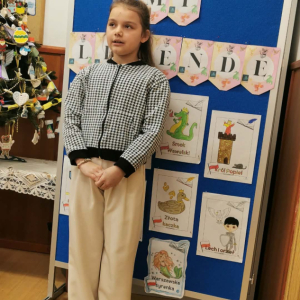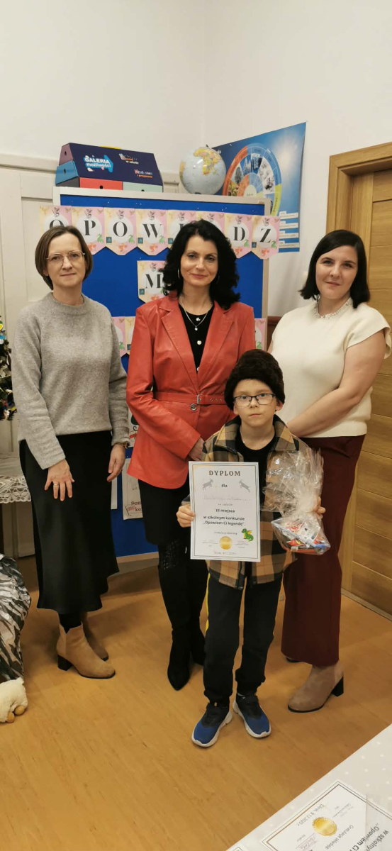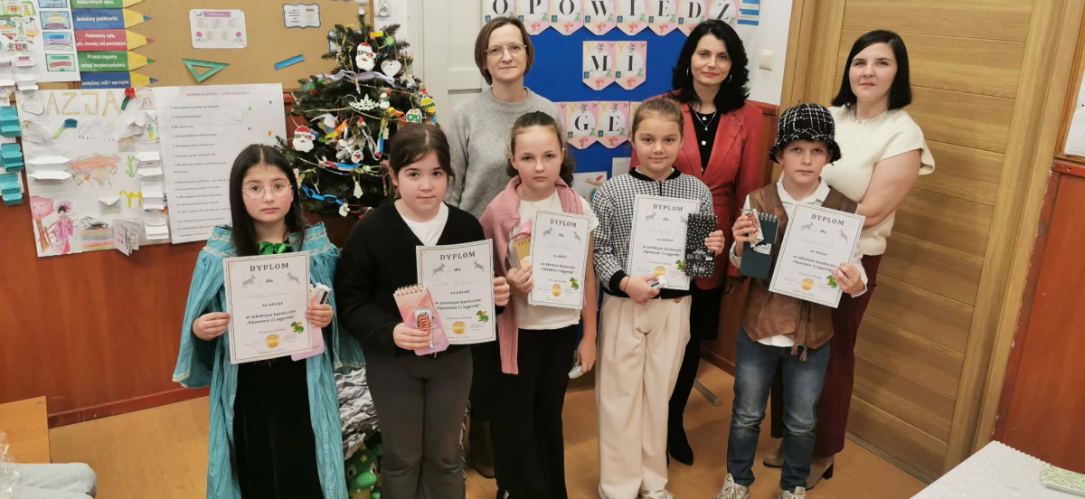 9 grudnia uczniowie klas III i IV zamienili salę lekcyjną w „Krainę legend”. Ośmioro uczniów naszej szkoły wzięło udział w szkolnym konkursie oratorskim pt. „Opowiedz mi legendę”. Konkurs przygotowany przez panie: Ewelinę Muchę i Annę Kwiatek miał na celu popularyzację i przypomnienie legend polskich. Uczestnicy konkursu rozwijali zdolności narracyjne oraz talenty oratorskie. Dzieci w sposób atrakcyjny i ciekawy zaprezentowały popularne polskie legendy. W konkursie wzięli udział: Julia, Jezior, Szymon Haber, Martyna Bieszczad, Natalia Cebulska, Roksana Marć, Zuzanna Drygaś, Hanna Misiura, Bartłomiej Tobiasz.