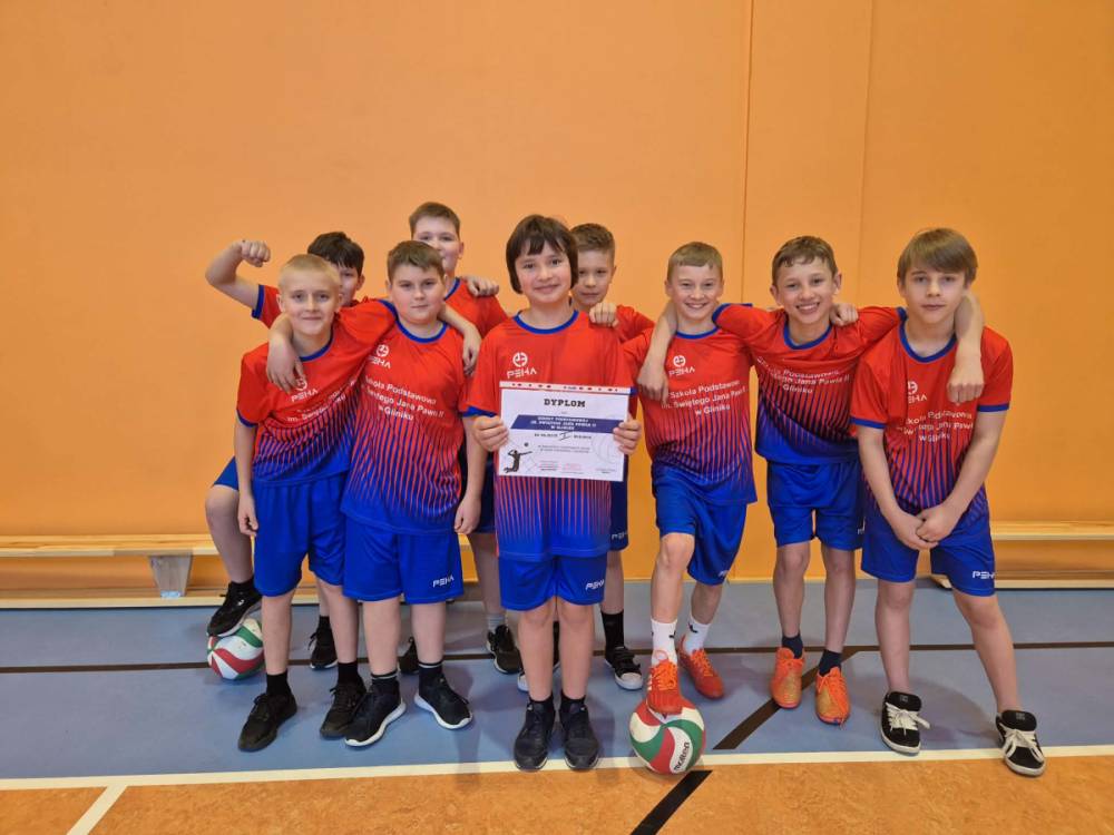Z ogromną radością informujemy, że reprezentacja naszej szkoły zajęła I miejsce w Gminnych Zawodach w Piłce Siatkowej Chłopców, rozgrywanych w ramach Igrzysk Dzieci.