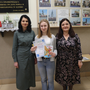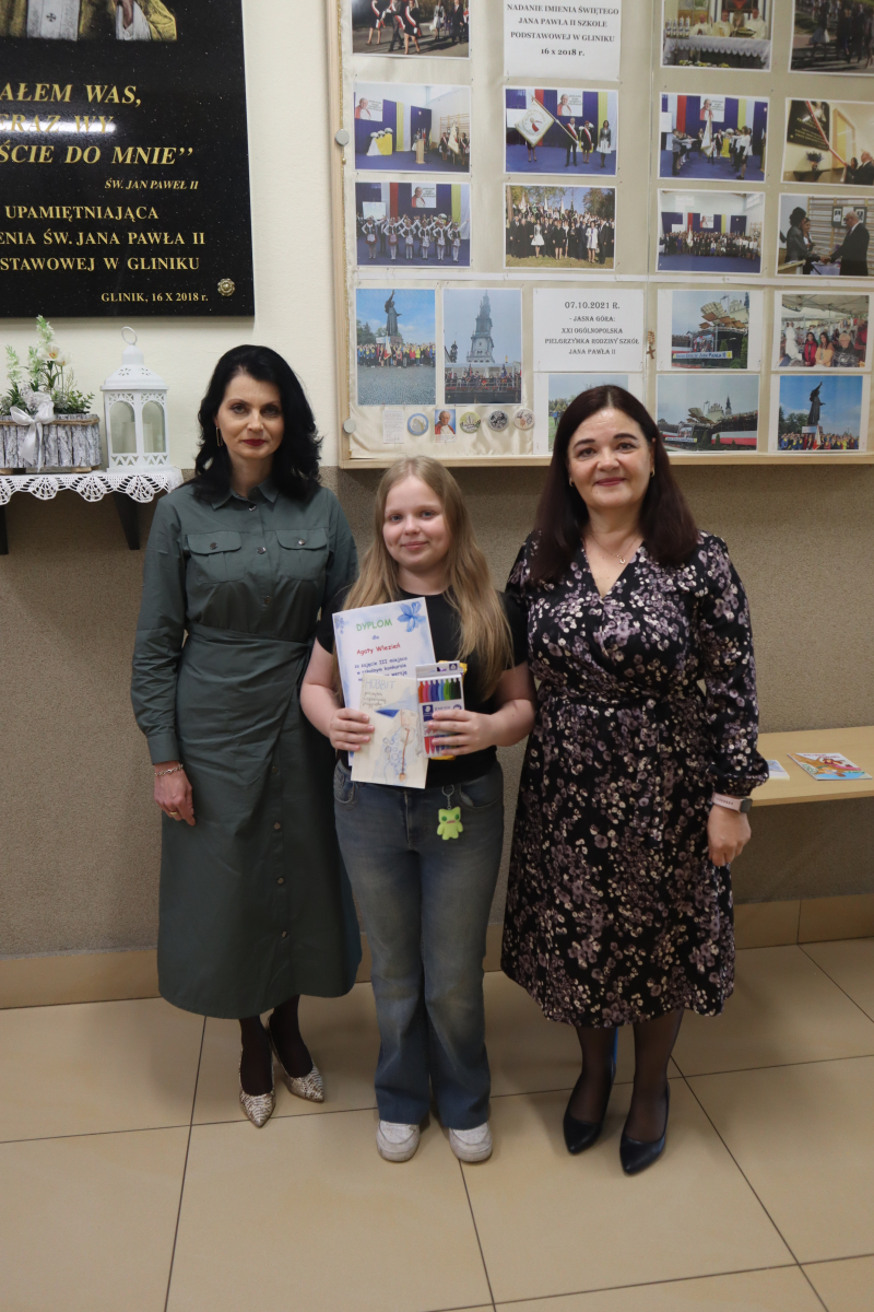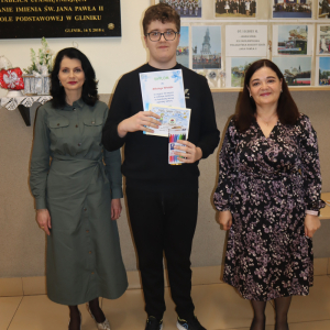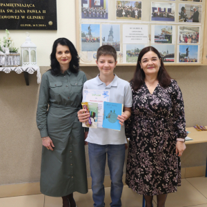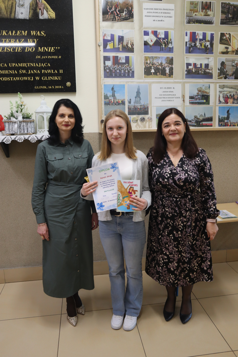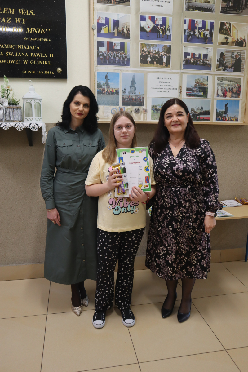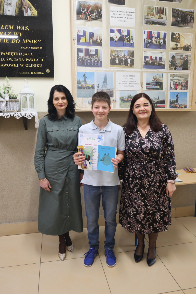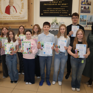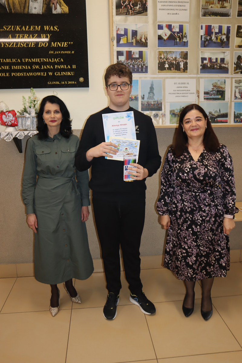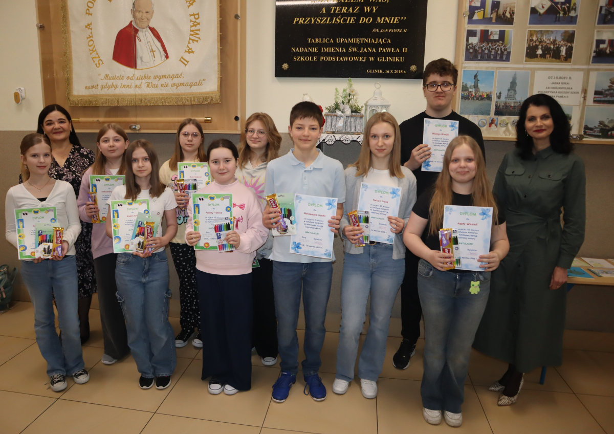 Podczas szkolnego podsumowania konkursów przyznano dyplomy i nagrody, wyróżniając autorów najciekawszych prac.