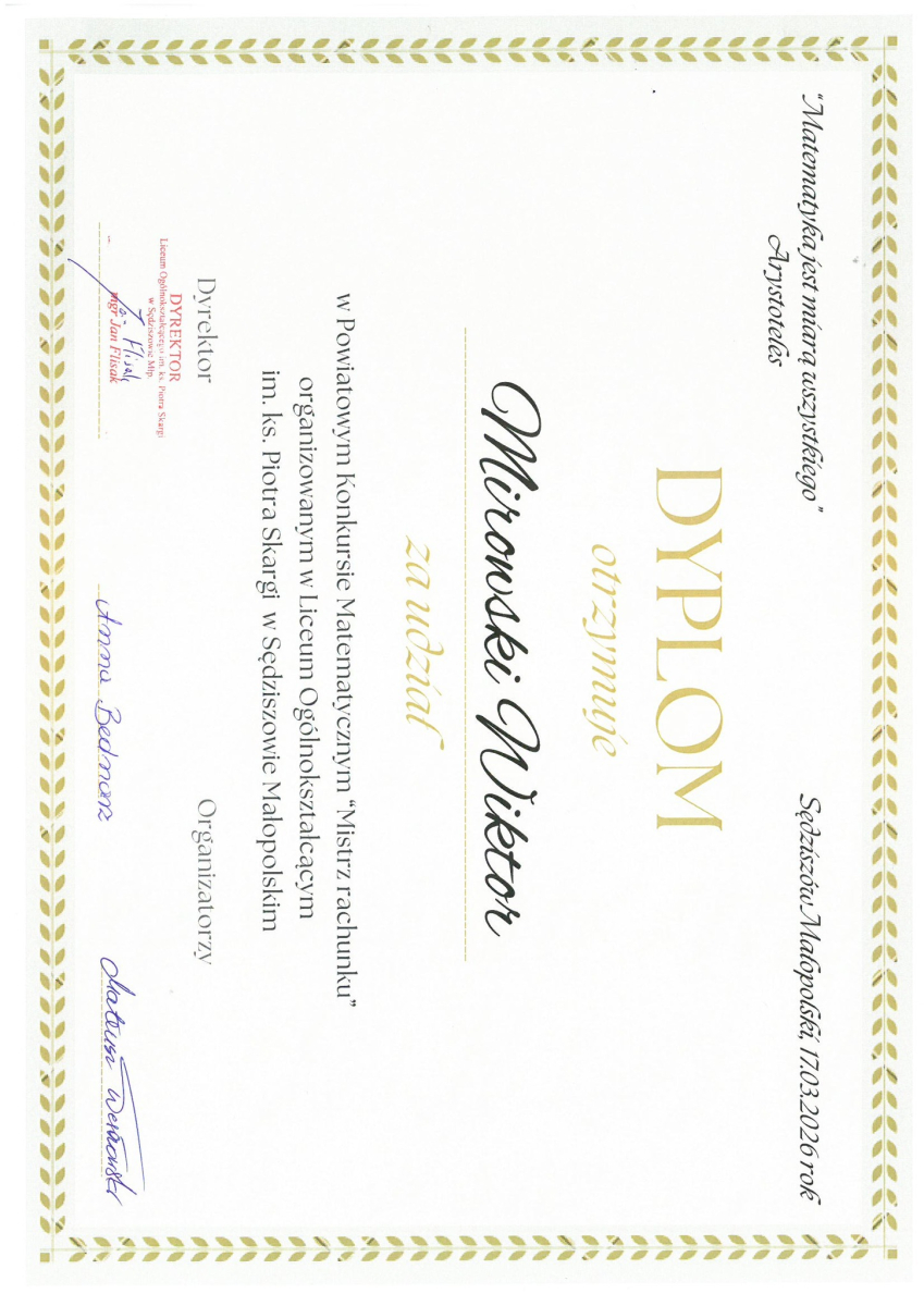 Powiatowy Konkurs Matematyczny „Mistrz rachunku”.