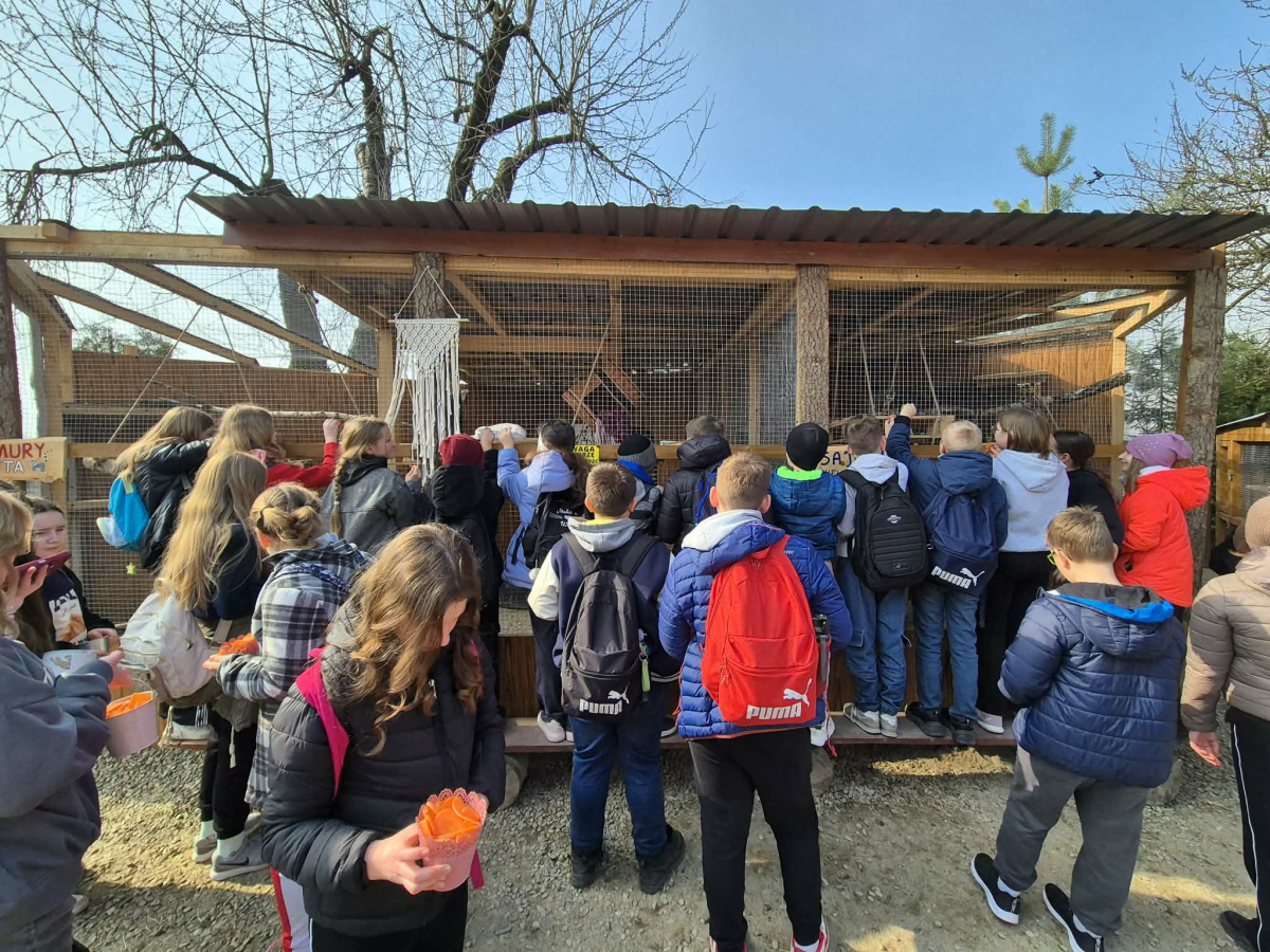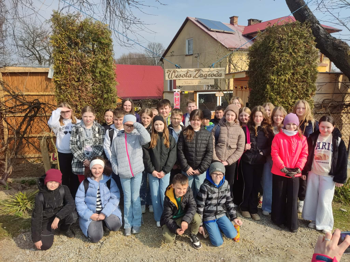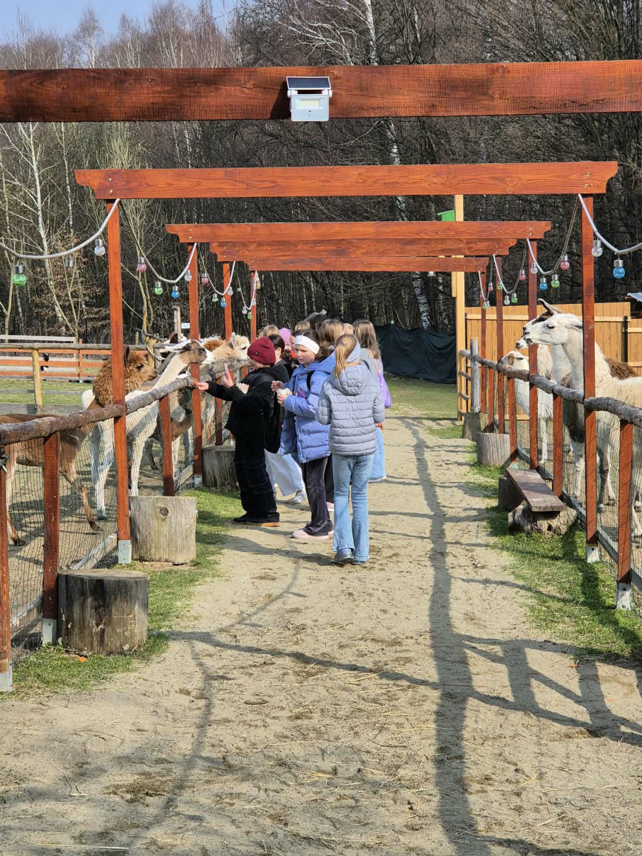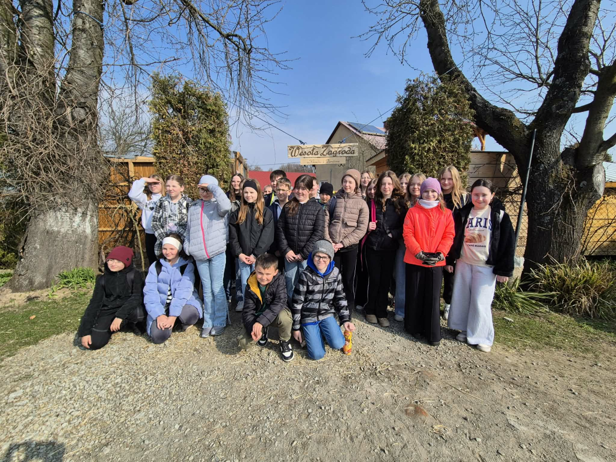 Uczniowie klas 4 i 5 uczestniczyli w wyjątkowej wycieczce do Wesołej Zagrody w Mini ZOO, gdzie mieli okazję spędzić czas wśród zwierząt oraz bliżej poznać uroki przyrody. Podczas wizyty dzieci z dużym zainteresowaniem obserwowały zwierzęta, karmiły je i dowiadywały się wielu ciekawostek na temat ich życia. Ważnym punktem wyjazdu było również powitanie wiosny przy pomniku przyrody w Wisniowej ,,Dębie Józefie". Wspólny spacer w otoczeniu budzącej się do życia przyrody pozwolił uczniom dostrzec pierwsze oznaki nowej pory roku. Dużo radości sprawiło wszystkim odnalezienie pierwszych wiosennych kwiatów, które stały się symbolem nadchodzącej wiosny. Wycieczka była nie tylko okazją do nauki i kontaktu z naturą, ale także do wspólnej integracji i aktywnego spędzenia czasu na świeżym powietrzu.