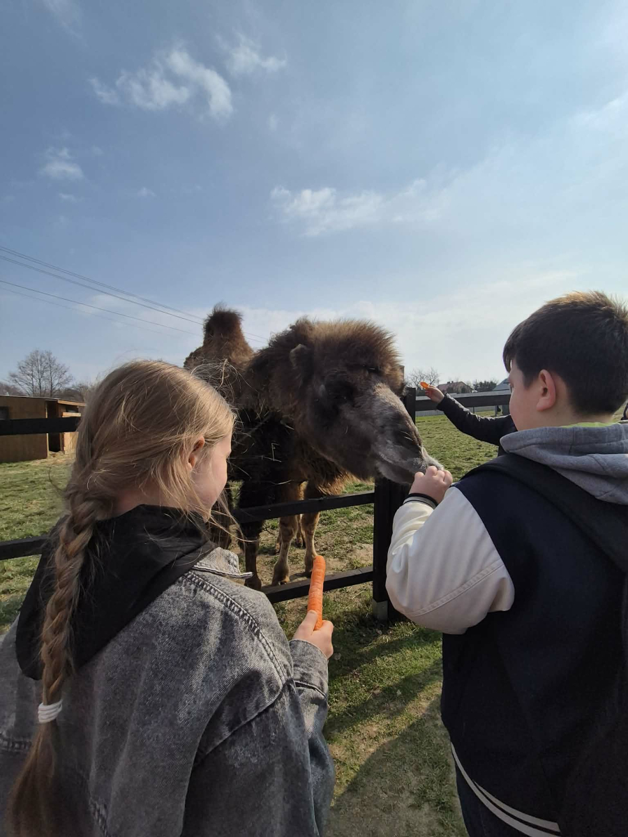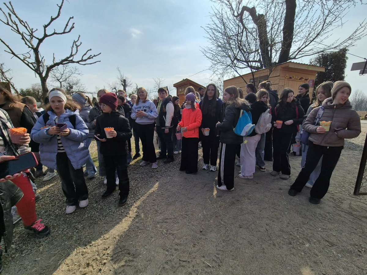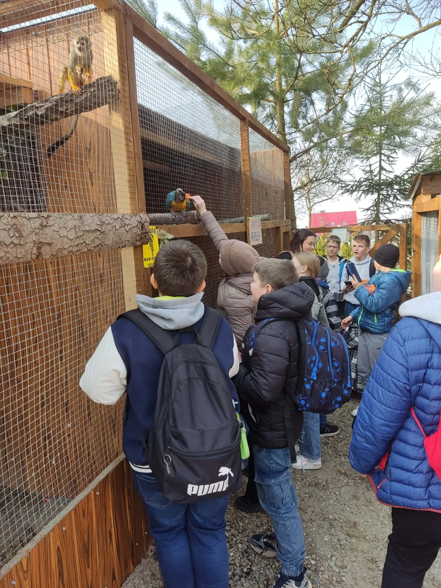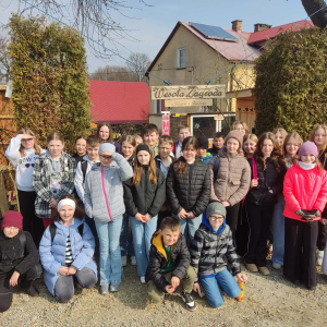 Uczniowie klas 4 i 5 uczestniczyli w wyjątkowej wycieczce do Wesołej Zagrody w Mini ZOO, gdzie mieli okazję spędzić czas wśród zwierząt oraz bliżej poznać uroki przyrody. Podczas wizyty dzieci z dużym zainteresowaniem obserwowały zwierzęta, karmiły je i dowiadywały się wielu ciekawostek na temat ich życia. Ważnym punktem wyjazdu było również powitanie wiosny przy pomniku przyrody w Wisniowej ,,Dębie Józefie". Wspólny spacer w otoczeniu budzącej się do życia przyrody pozwolił uczniom dostrzec pierwsze oznaki nowej pory roku. Dużo radości sprawiło wszystkim odnalezienie pierwszych wiosennych kwiatów, które stały się symbolem nadchodzącej wiosny. Wycieczka była nie tylko okazją do nauki i kontaktu z naturą, ale także do wspólnej integracji i aktywnego spędzenia czasu na świeżym powietrzu.