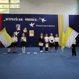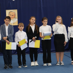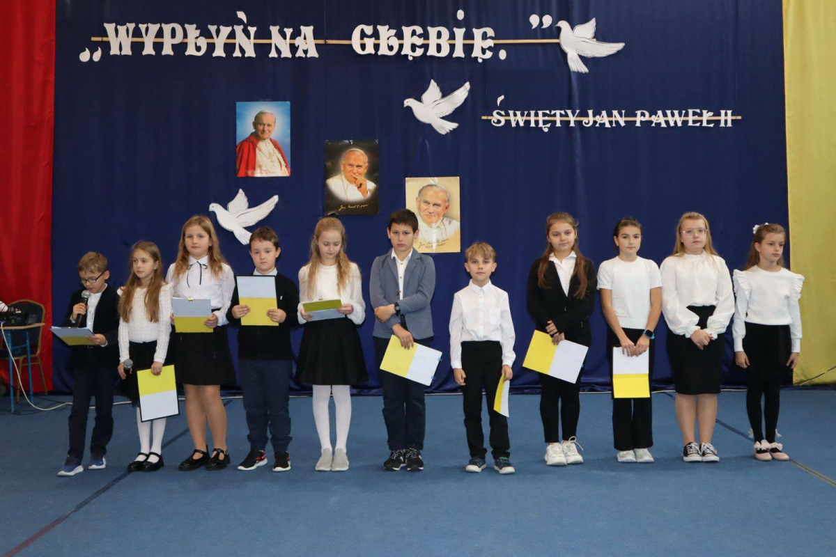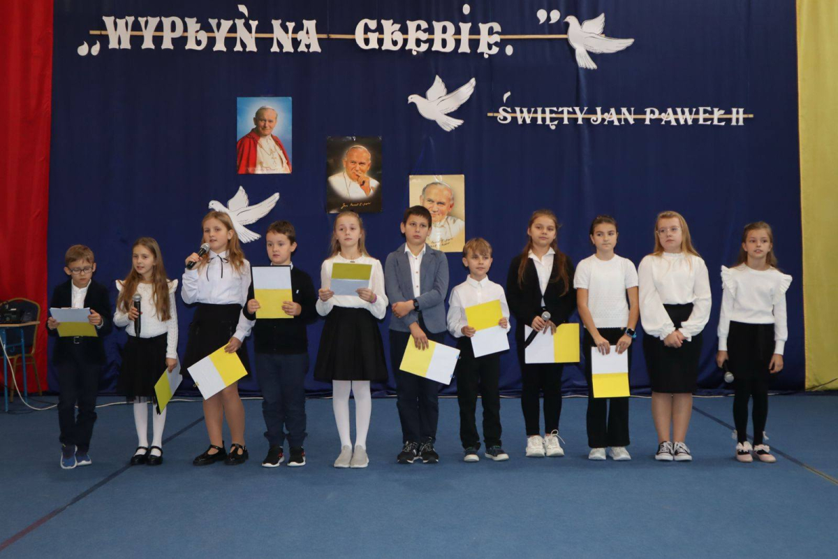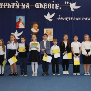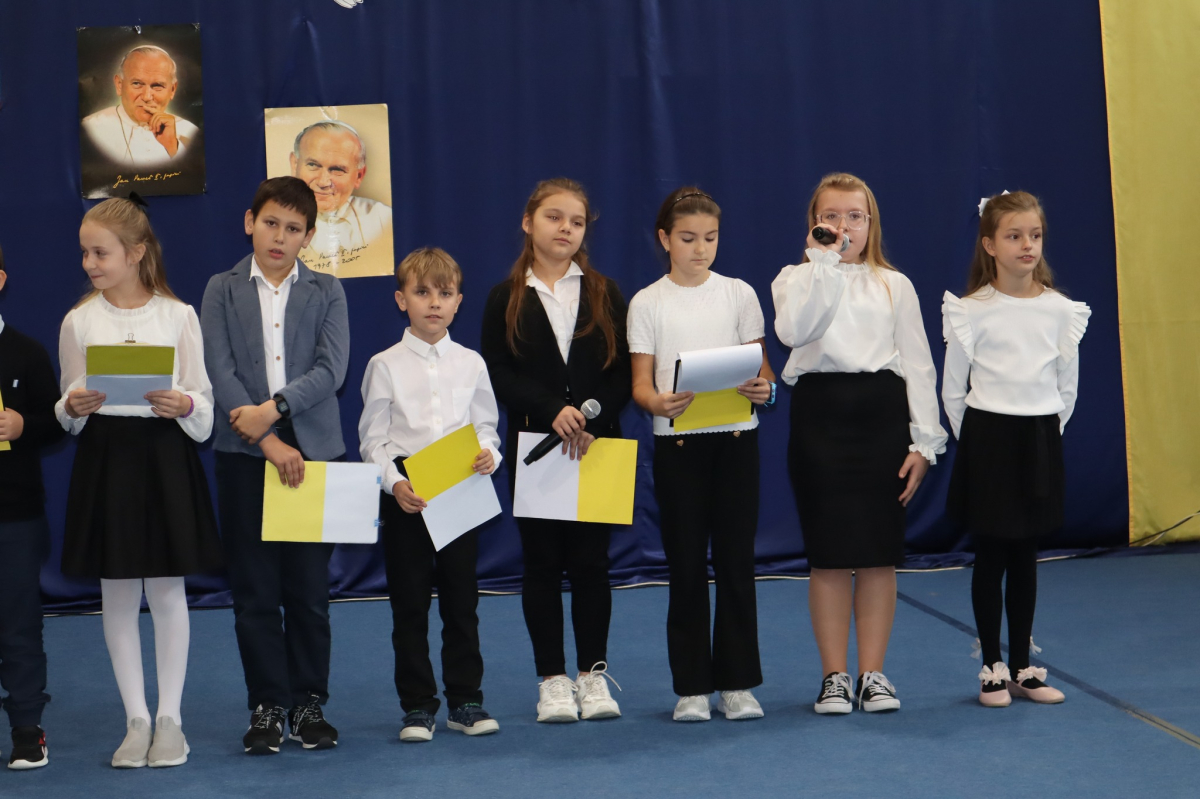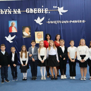 15 października obchodziliśmy w naszej szkole wyjątkowe święto - Dzień Patrona Szkoły Świętego Jana Pawła II. Uroczystość rozpoczęliśmy Mszą Świętą w Kościele Parafialnym pw. Św. Maksymiliana Marii Kolbego w Gliniku, którą dla całej społeczności szkolnej odprawił Ksiądz Proboszcz Ryszard Potyrała. Dalsza część uroczystości odbyła się w szkole. Uroczystą akademię rozpoczęła Pani Dyrektor Wioletta Sarna, która powitała zaproszonych gości, nauczycieli oraz uczniów naszej szkoły. Montaż słowno - muzyczny poświęcony postaci naszego Patrona przedstawili uczniowie klasy III przygotowani pod kierunkiem wychowawczyni Pani Eweliny Muchy. Był to czas, aby uczcić pamięć i dziedzictwo wielkiego Polaka, który inspirował nas do działania, dialogu i otwartości na drugiego człowieka. Jego przesłanie o miłości, szacunku i solidarności wciąż jest dla nas ważne. W tym dniu przypomnieliśmy sobie o wartościach, które głosił, oraz o tym, jak możemy je wdrażać w nasze codzienne życie. Niech jego mądrość prowadzi nas w nauce i relacjach z innymi.