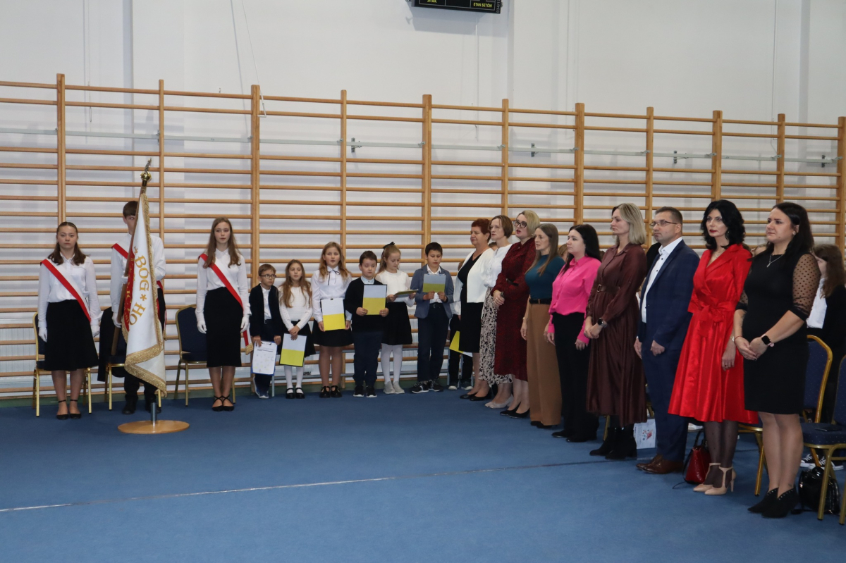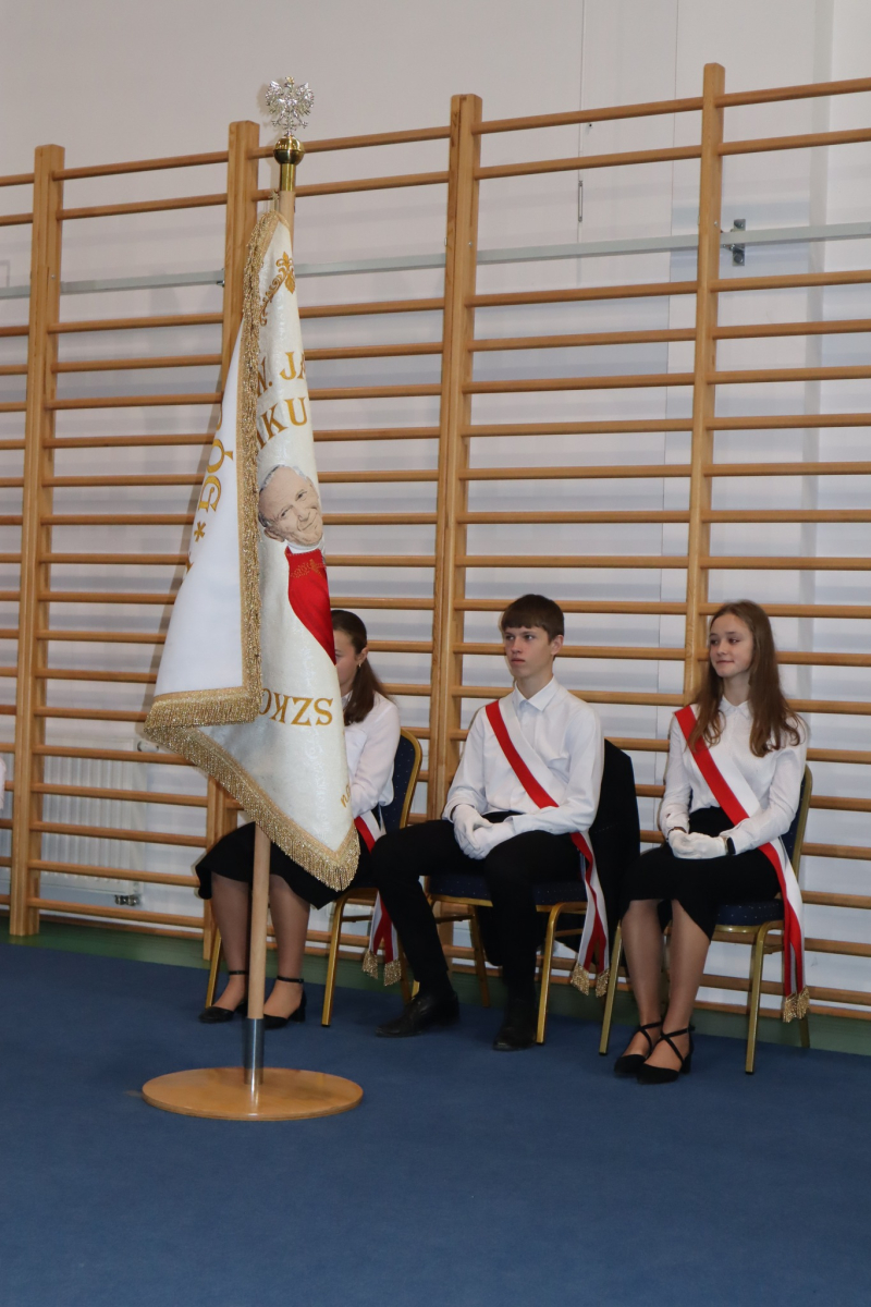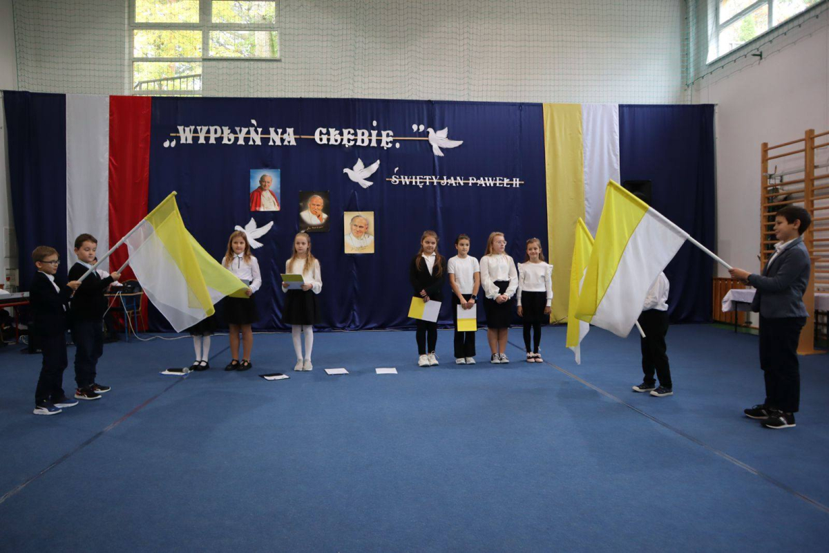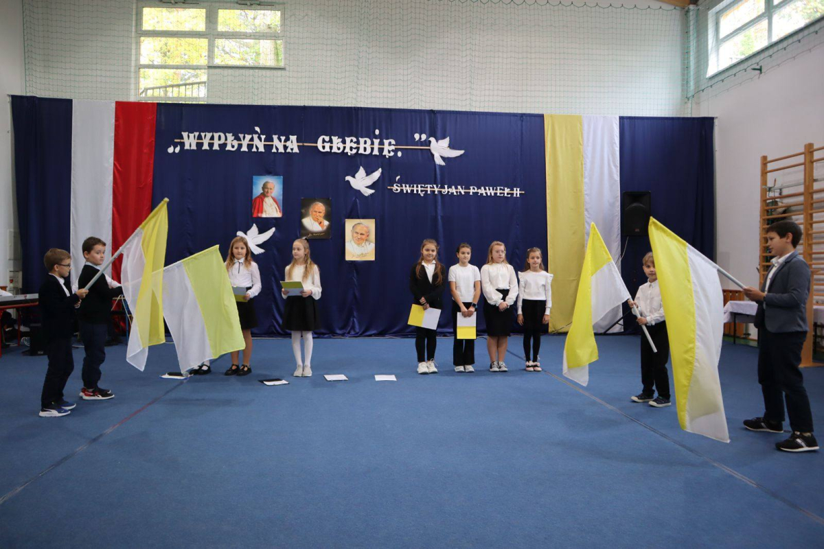 15 października obchodziliśmy w naszej szkole wyjątkowe święto - Dzień Patrona Szkoły Świętego Jana Pawła II. Uroczystość rozpoczęliśmy Mszą Świętą w Kościele Parafialnym pw. Św. Maksymiliana Marii Kolbego w Gliniku, którą dla całej społeczności szkolnej odprawił Ksiądz Proboszcz Ryszard Potyrała. Dalsza część uroczystości odbyła się w szkole. Uroczystą akademię rozpoczęła Pani Dyrektor Wioletta Sarna, która powitała zaproszonych gości, nauczycieli oraz uczniów naszej szkoły. Montaż słowno - muzyczny poświęcony postaci naszego Patrona przedstawili uczniowie klasy III przygotowani pod kierunkiem wychowawczyni Pani Eweliny Muchy. Był to czas, aby uczcić pamięć i dziedzictwo wielkiego Polaka, który inspirował nas do działania, dialogu i otwartości na drugiego człowieka. Jego przesłanie o miłości, szacunku i solidarności wciąż jest dla nas ważne. W tym dniu przypomnieliśmy sobie o wartościach, które głosił, oraz o tym, jak możemy je wdrażać w nasze codzienne życie. Niech jego mądrość prowadzi nas w nauce i relacjach z innymi.