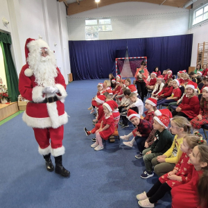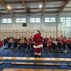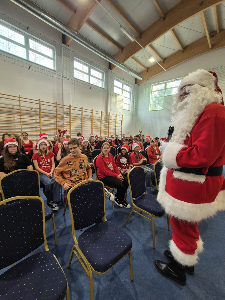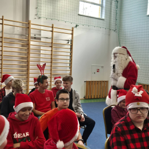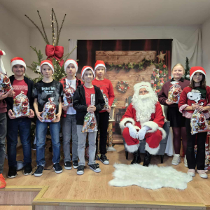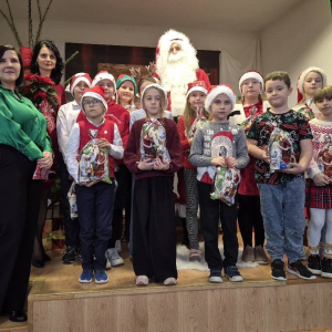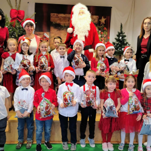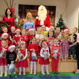 Dziś odwiedził nas wyjątkowy gość prosto z Laponii! Dzieci przywitały św. Mikołaja piosenkami i wierszykami, a on obdarował każdego małym upominkiem i mnóstwem uśmiechu.