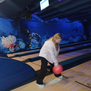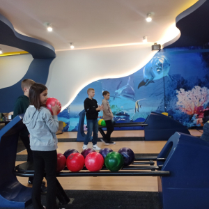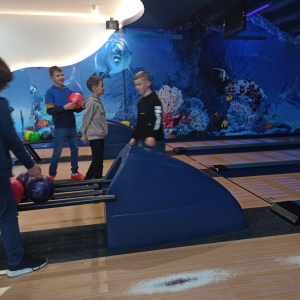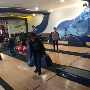 Po kinie przyszedł czas na aktywną zabawę w kręgielni ,,Laguna” w Ropczycach. Wspólne rozgrywki okazały się świetną okazją do integracji, nauki zdrowej rywalizacji oraz wzajemnego wspierania się. Radość i śmiech towarzyszyły wszystkim uczestnikom, a niektórzy odkryli w sobie prawdziwy talent do gry w kręgle.