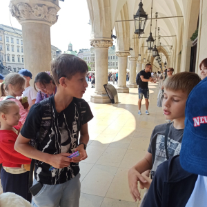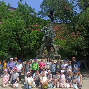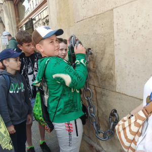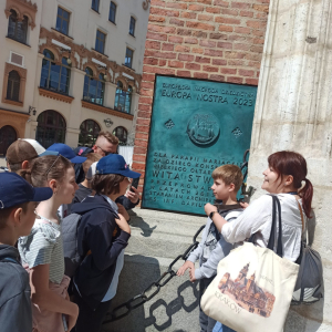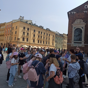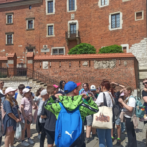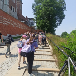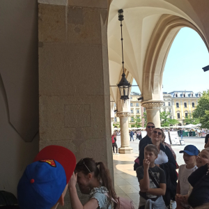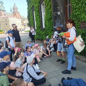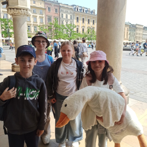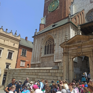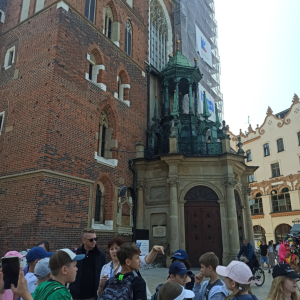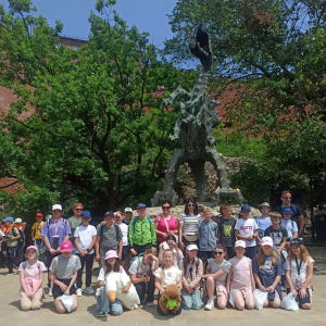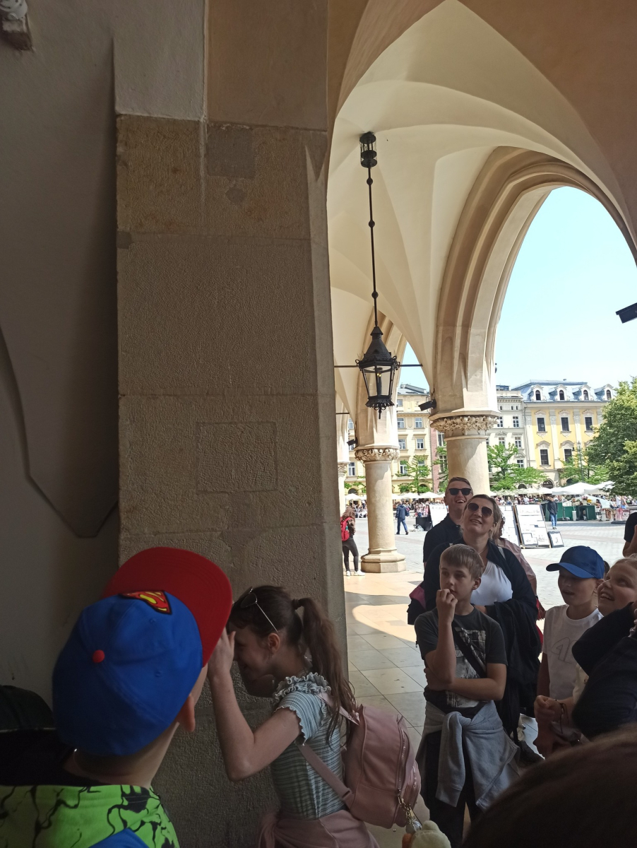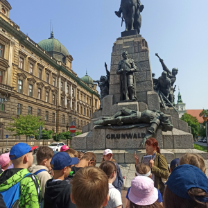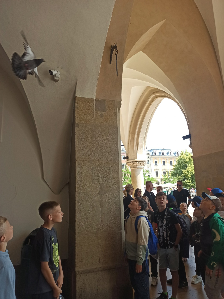 Uczniowie wzięli udział w programie ,,Średniowieczny Kraków ". Wraz z Panią przewodnik Katarzyną Garus przemierzyliśmy Drogę Królewską, od Barbakanu przez Rynek Główny, Sukiennice, kościół Mariacki, Wzgórze Wawelskie do Smoczej Jamy. Atrakcją programu były inscenizowane legendy o hejnale mariackim, ,,bitwa" na piankowe miecze oraz spotkanie ze smokiem wawelskim. Zwiedziliśmy również Ogród Zoologiczny w Krakowie, w którym mogliśmy podziwiać wiele gatunków egzotycznych zwierząt.