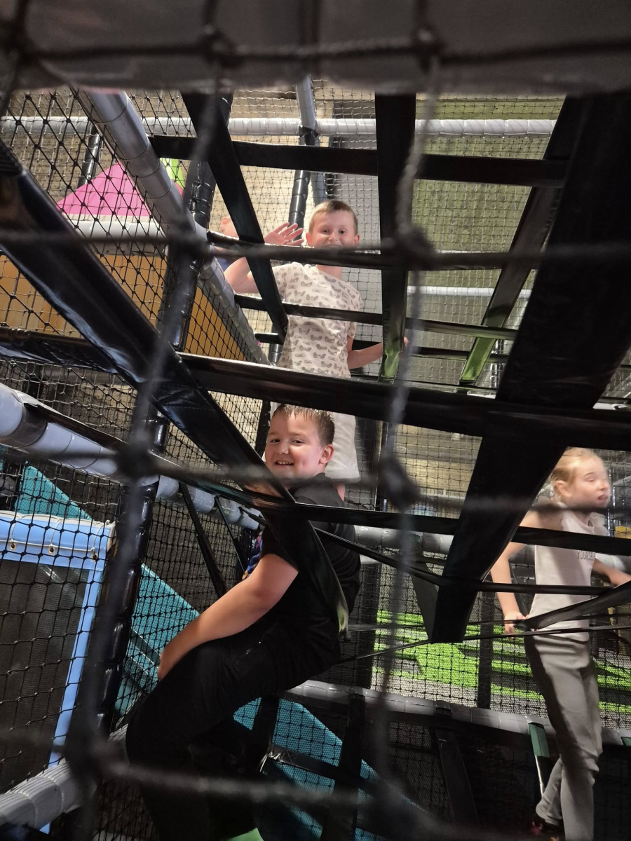 Nie obyło się bez chwil odpoczynku — dzieci zjadły pyszne drugie śniadanie, podzieliły się wrażeniami i nabrały sił przed kolejnymi atrakcjami. Wycieczka była nie tylko świetną zabawą, ale także okazją do integracji , budowania pozytywnych poprawnych relacji rówieśniczych— uczniowie lepiej się poznali, pomagali sobie nawzajem, kibicowali kolegom. W drodze powrotnej w autobusie panowała atmosfera pełna śmiechu i rozmów — wszyscy zgodnie stwierdzili, że to był dzień, który zapadnie w pamięć na długo.