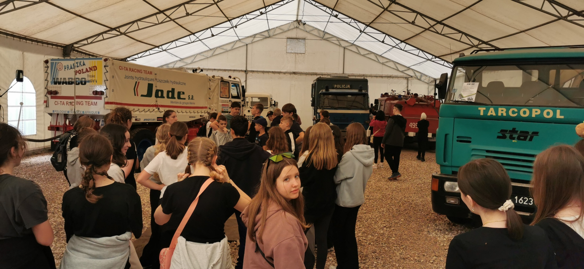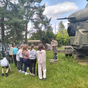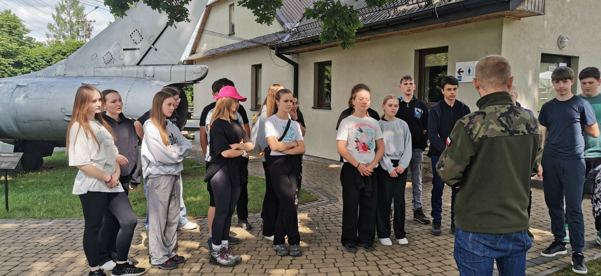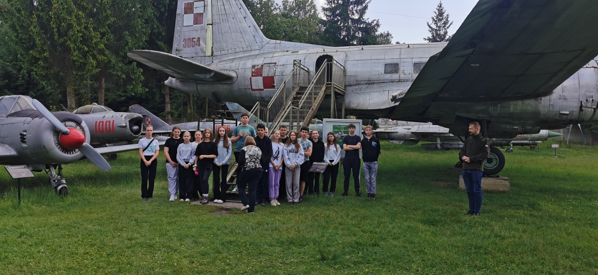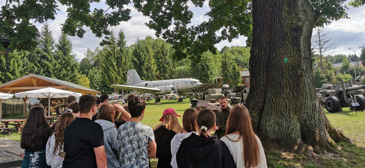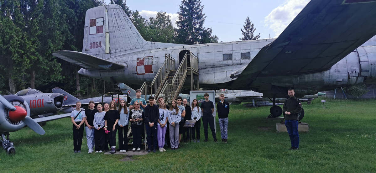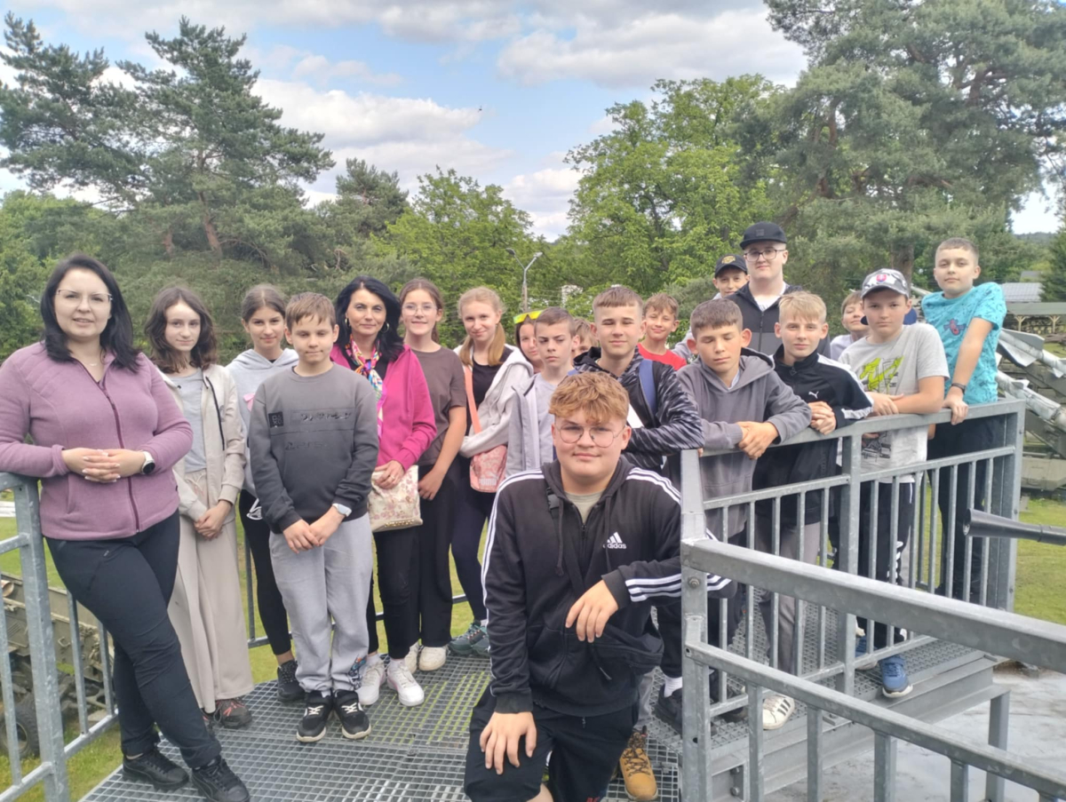 Na zakończenie odwiedziliśmy Skarżysko-Kamienną, gdzie mieści się Muzeum im. Orła Białego. Tam uczniowie mogli obejrzeć bogatą kolekcję sprzętu wojskowego, w tym czołgi, samoloty i broń z różnych okresów historycznych. Ekspozycja zrobiła na wszystkich ogromne wrażenie i była doskonałą lekcją historii najnowszej.